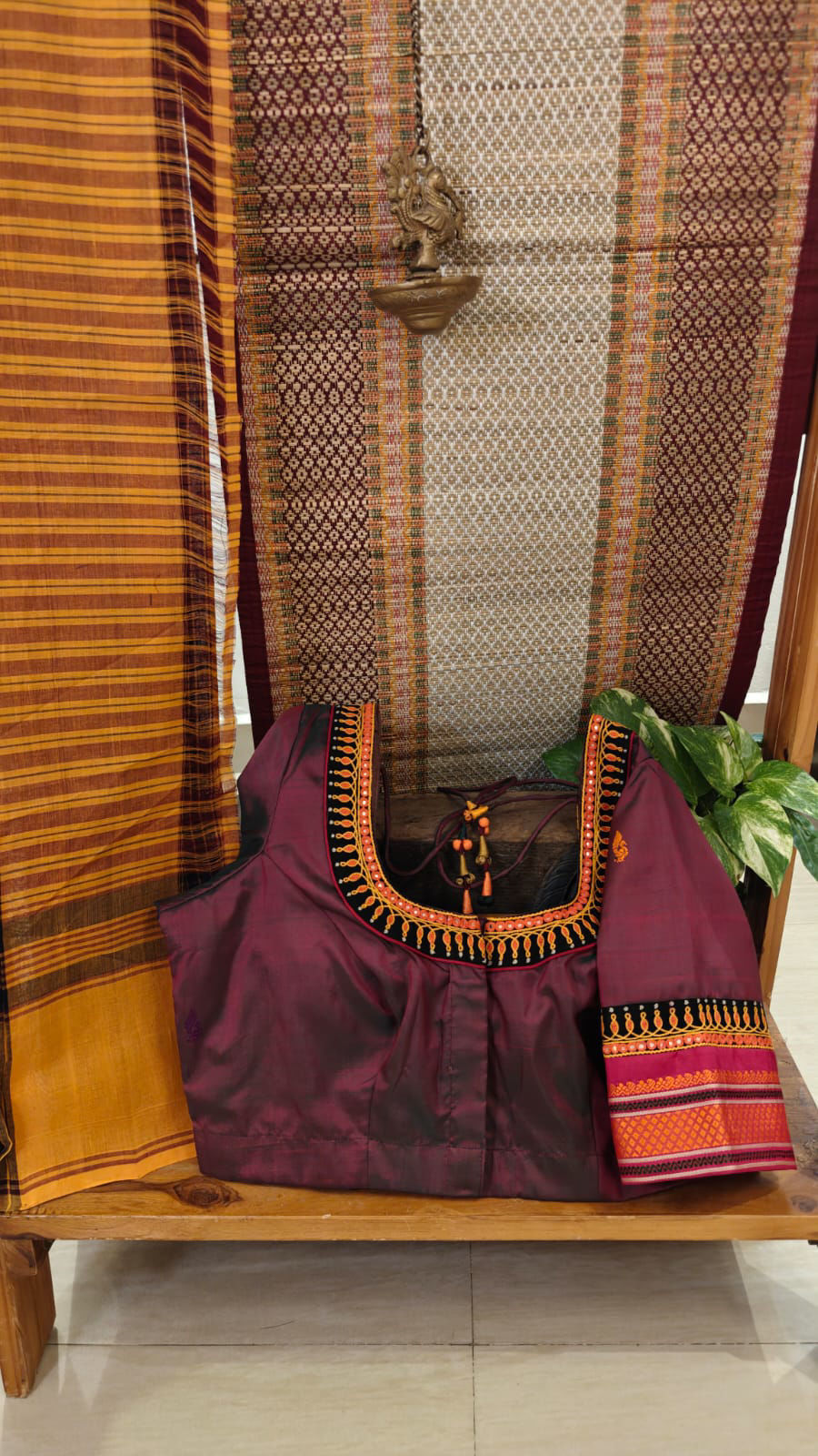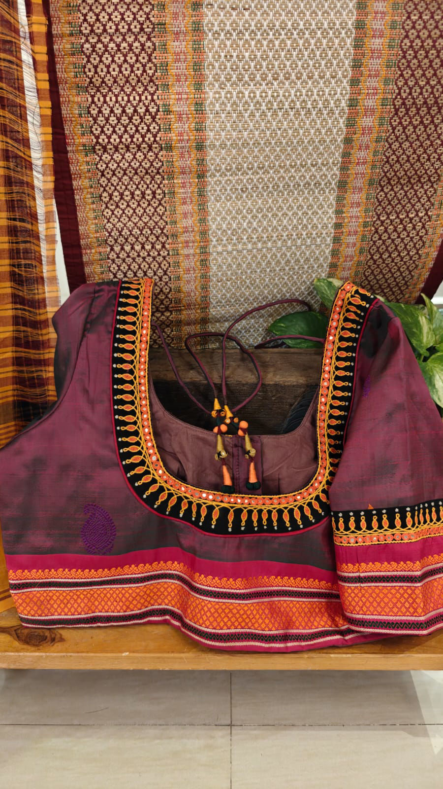 Our artisans creatively hand embroider, hand paint and hand print the blouses that come to you from the design house of SVASA. We use hand woven fabric extensively. You may notice very minute, almost insignificant flaws in the crafts since they are all handmade. We urge our patrons to overlook a few human errors that may have occurred in the process. Our aspirations are towards an empowered society, focusing on keeping traditional needlecraft alive for a long time to come.