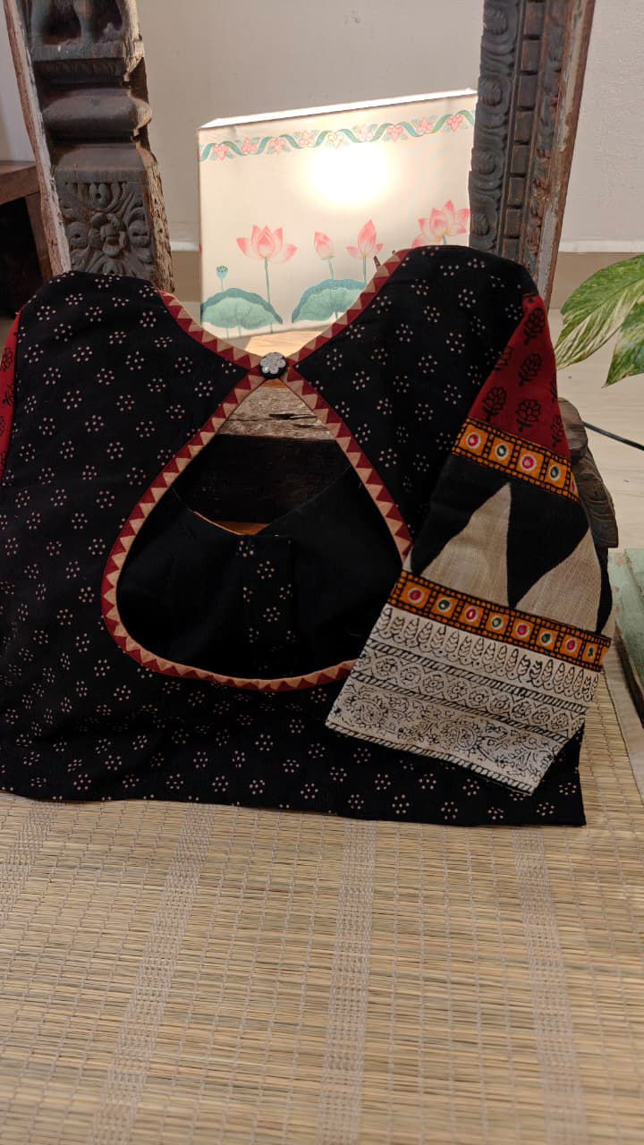 Our most-loved mix of blocks, crafted in a cut choli pattern and adorned with tribal embroidery. A timeless blend of rustic weaves and heritage charm. 🪡🌿