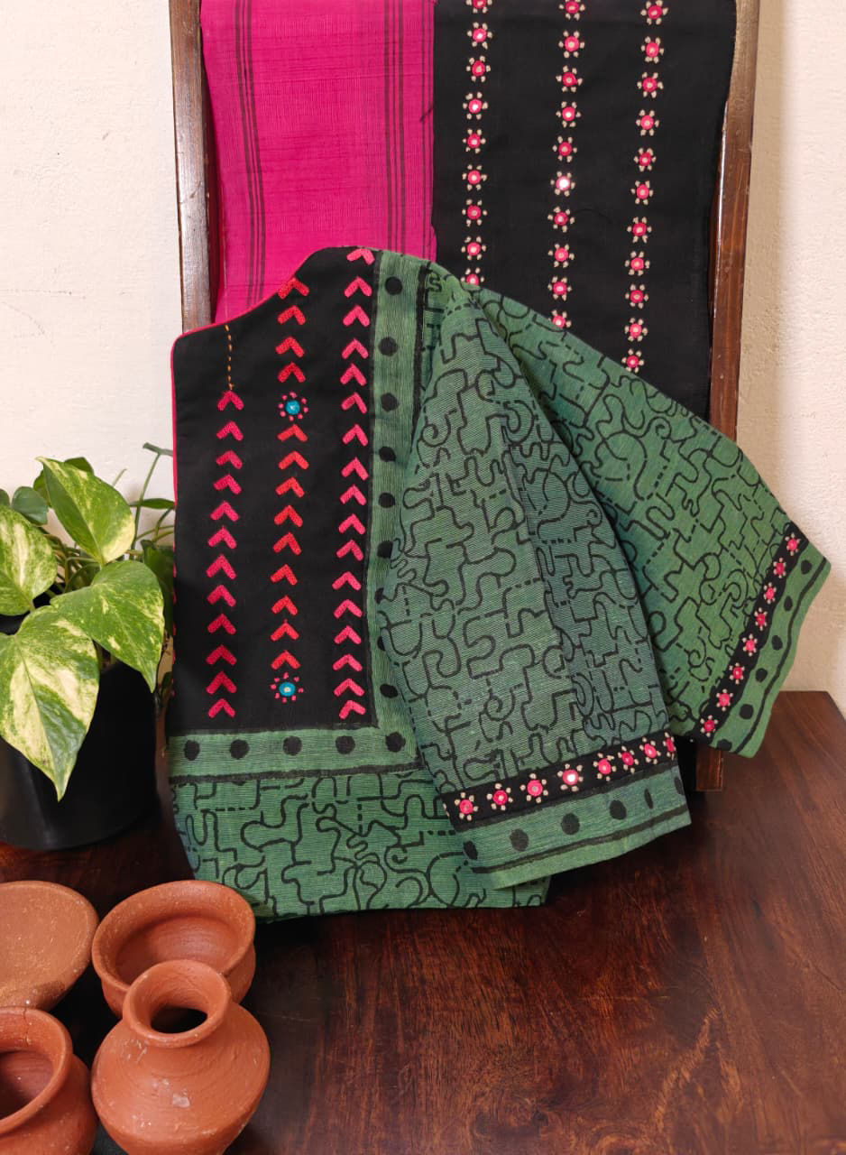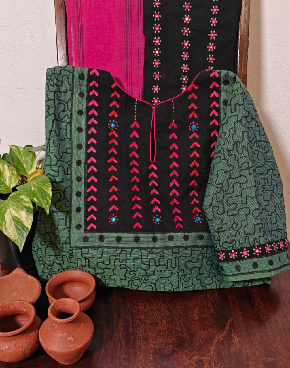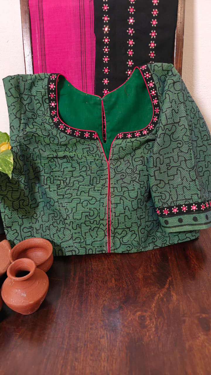 Our artisans creatively hand embroider, hand paint and hand print the blouses that come to you from the design house of SVASA. We use hand woven fabric extensively. You may notice very minute, almost insignificant flaws in the crafts since they are all handmade. We urge our patrons to overlook a few human errors that may have occurred in the process. Our aspirations are towards an empowered society, focusing on keeping traditional needlecraft alive for a long time to come.