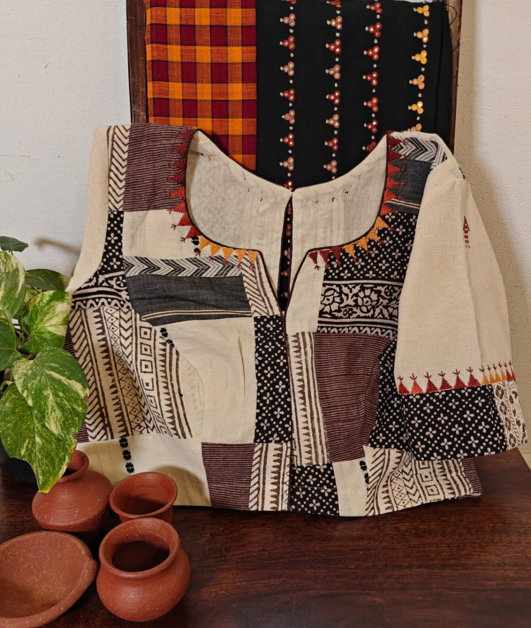 Our artisans creatively hand embroider, hand paint and hand print the blouses that come to you from the design house of SVASA. We use hand woven fabric extensively. You may notice very minute, almost insignificant flaws in the crafts since they are all handmade. We urge our patrons to overlook a few human errors that may have occurred in the process. Our aspirations are towards an empowered society, focusing on keeping traditional needlecraft alive for a long time to come.