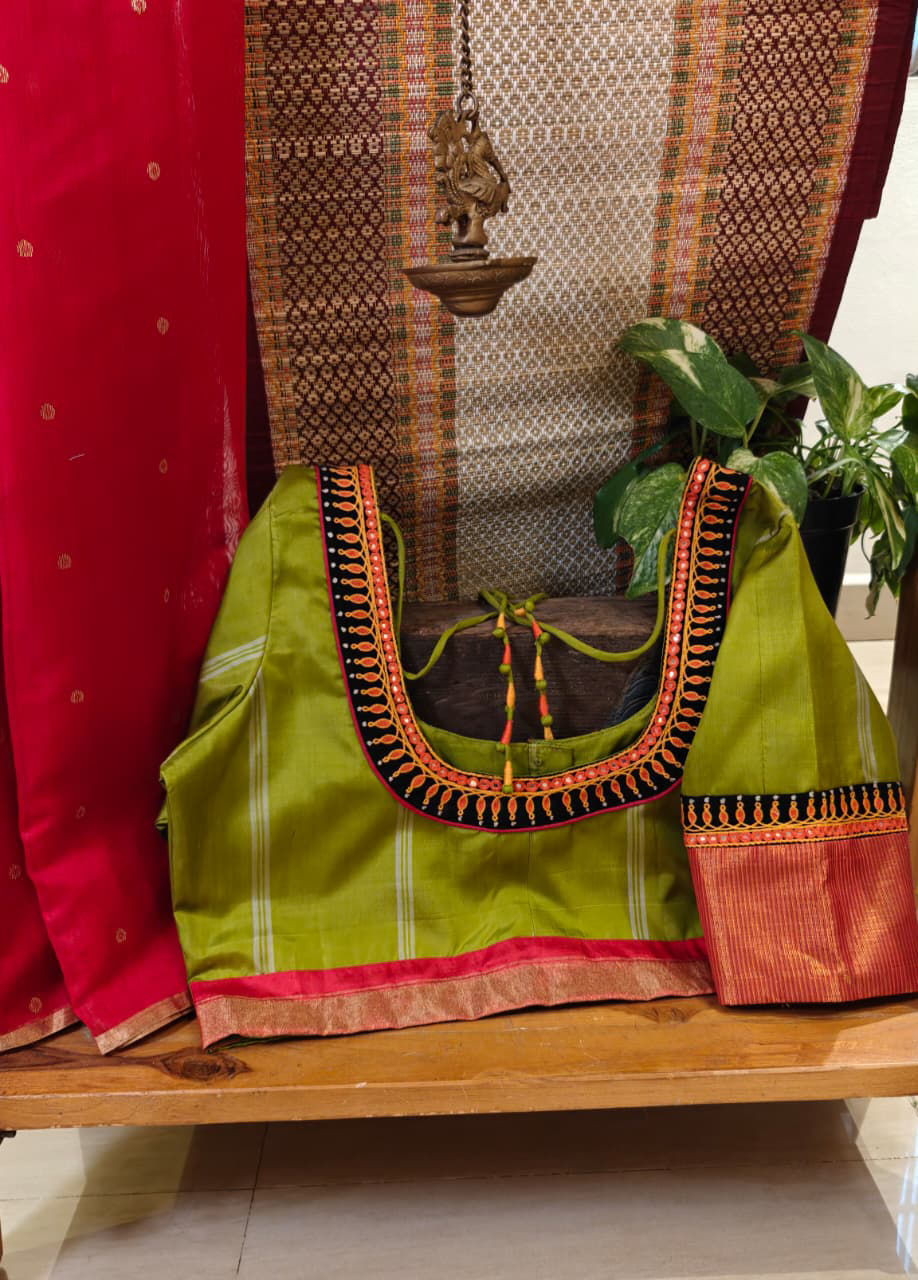 Our artisans creatively hand embroider, hand paint and hand print the blouses that come to you from the design house of SVASA. We use hand woven fabric extensively. You may notice very minute, almost insignificant flaws in the crafts since they are all handmade. We urge our patrons to overlook a few human errors that may have occurred in the process. Our aspirations are towards an empowered society, focusing on keeping traditional needlecraft alive for a long time to come.