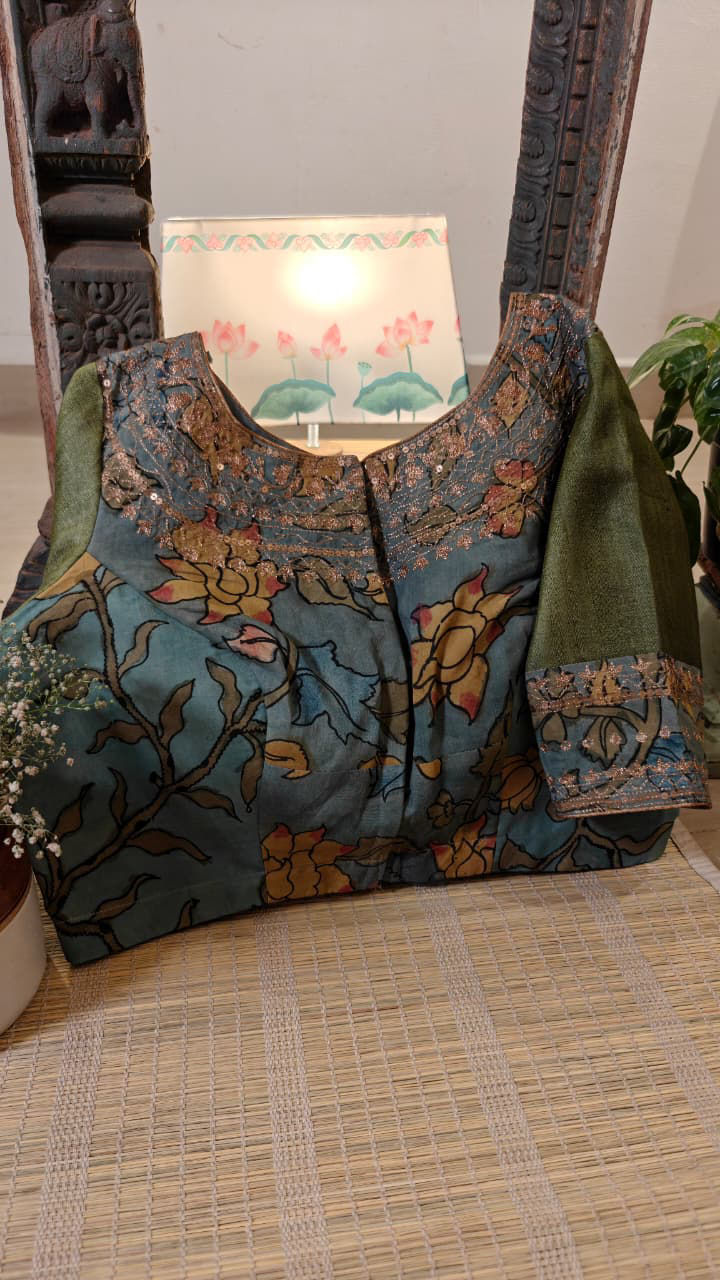Our artisans creatively hand embroider, hand paint and hand print the blouses that come to you from the design house of SVASA. We use hand woven fabric extensively. You may notice very minute, almost insignificant flaws in the crafts since they are all handmade. We urge our patrons to overlook a few human errors that may have occurred in the process. Our aspirations are towards an empowered society, focusing on keeping traditional needlecraft alive for a long time to come.