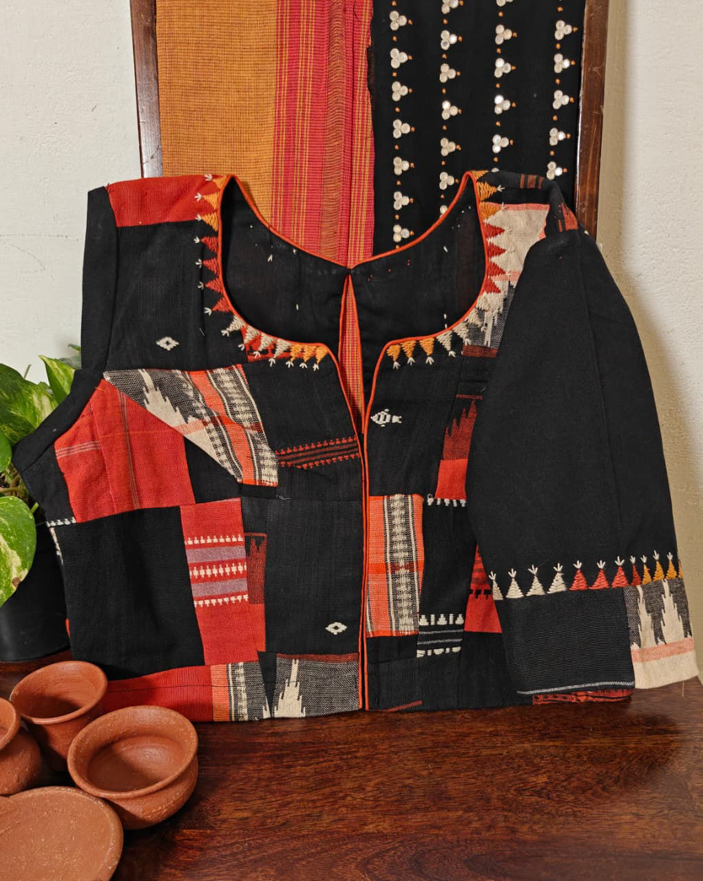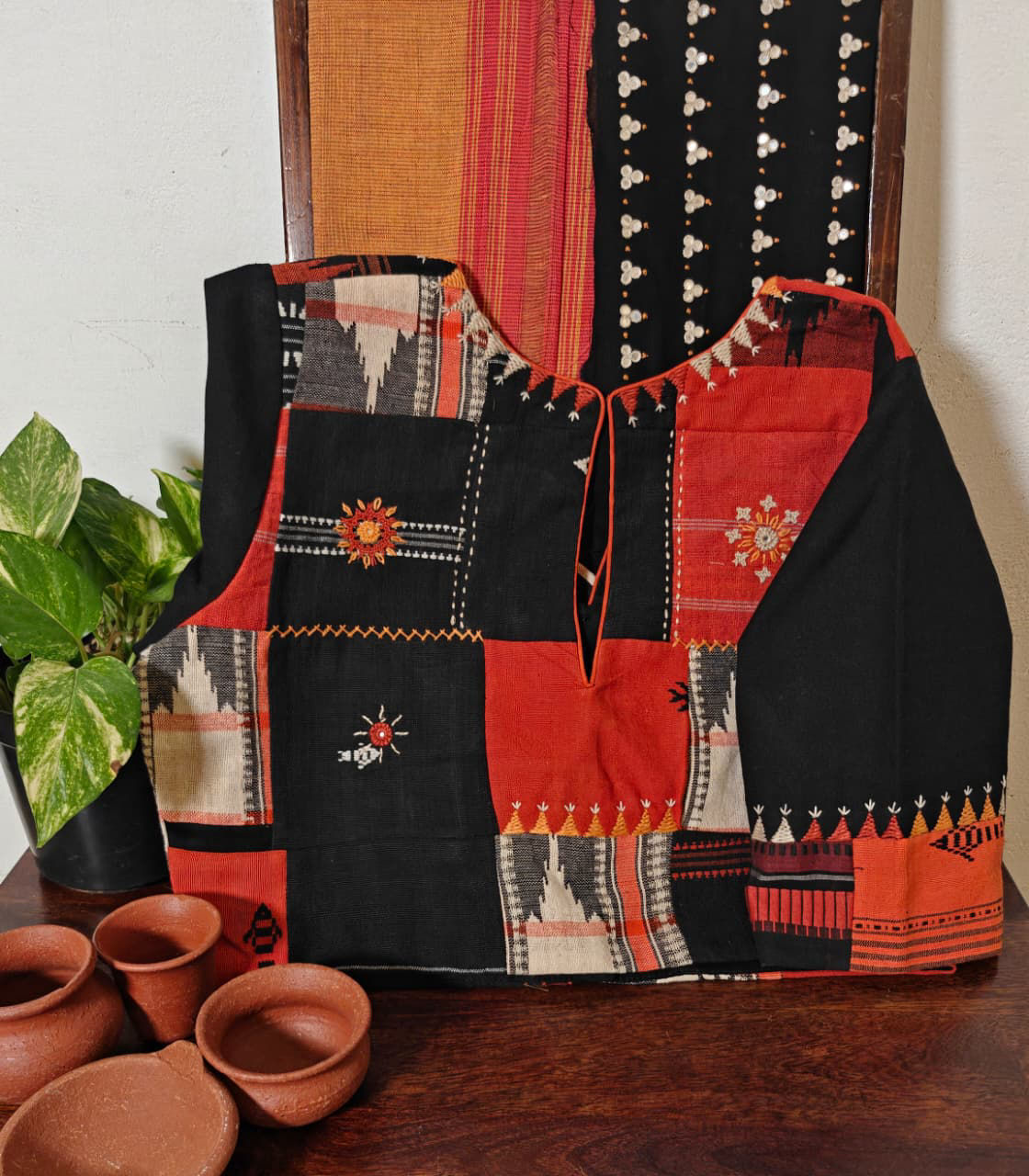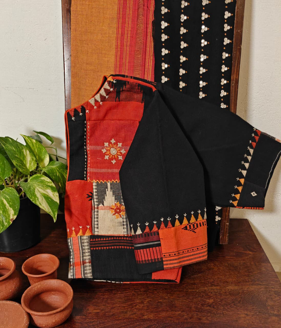 Pieces of Kotpad weaves sewn together, embroidered in abstracts to create a rustic mix 🎨✨ A play of textures, colours, and heritage that tells its own handmade story. 🌿🀍