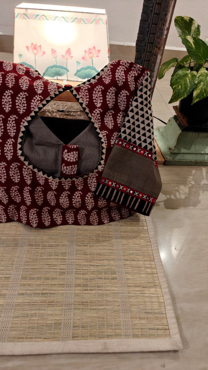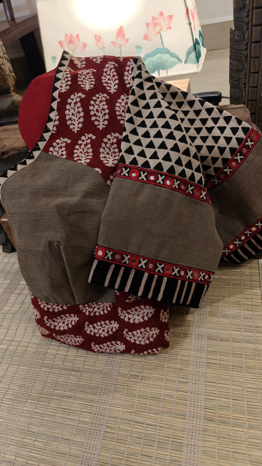 Our artisans creatively hand embroider, hand paint and hand print the blouses that come to you from the design house of SVASA. We use hand woven fabric extensively. You may notice very minute, almost insignificant flaws in the crafts since they are all handmade. We urge our patrons to overlook a few human errors that may have occurred in the process. Our aspirations are towards an empowered society, focusing on keeping traditional needlecraft alive for a long time to come.