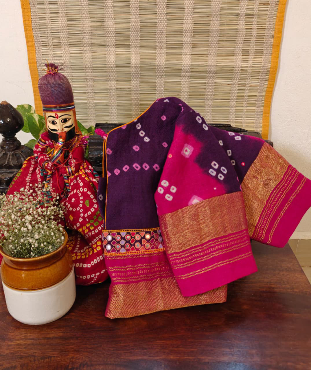 A play of purple and pink bandhani brought alive with tribal embroidery in vibrant hues. A burst of color, a piece of heritage โ€” handcrafted with love at Svasa. ๐Ÿชกโœจ๐ŸŒธ
