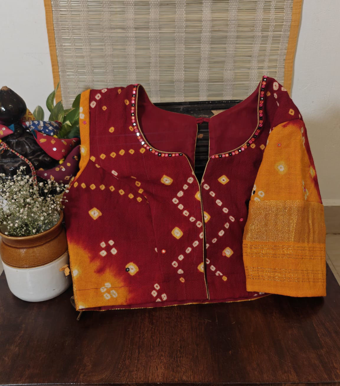 Vibrant bandhani in red and yellow — brought alive with intricate folk embroidery. A celebration of colour, craft, and culture, handmade with love at Svasa 🪡✨