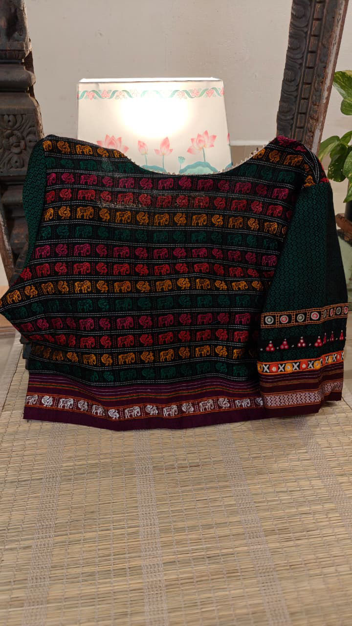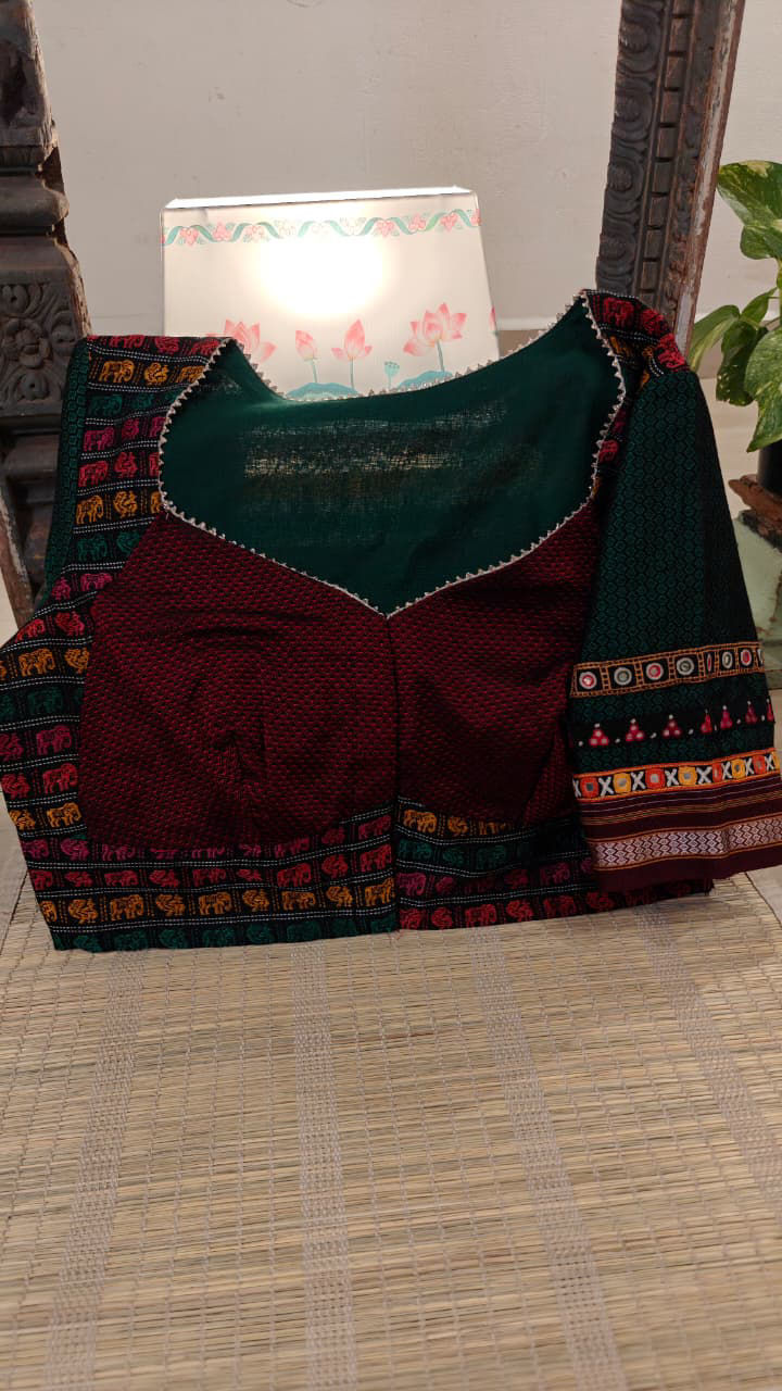 Our artisans creatively hand embroider, hand paint and hand print the blouses that come to you from the design house of SVASA. We use hand woven fabric extensively. You may notice very minute, almost insignificant flaws in the crafts since they are all handmade. We urge our patrons to overlook a few human errors that may have occurred in the process. Our aspirations are towards an empowered society, focusing on keeping traditional needlecraft alive for a long time to come.
