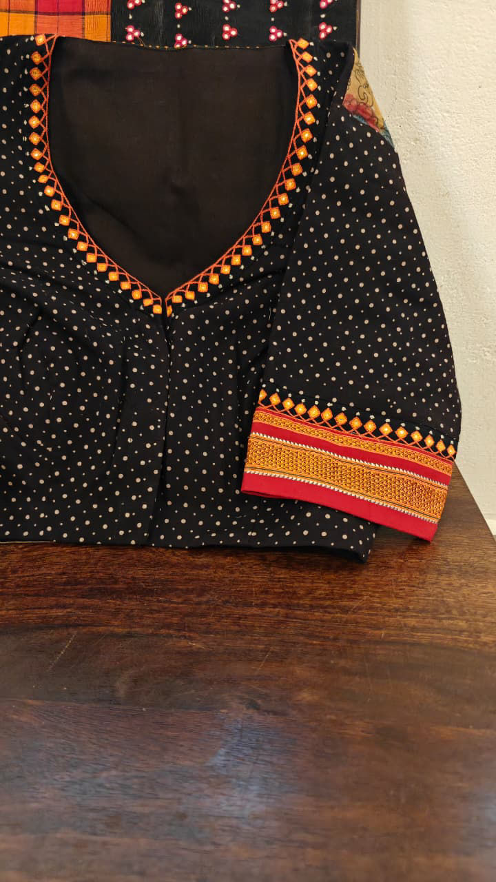Our artisans creatively hand embroider, hand paint and hand print the blouses that come to you from the design house of SVASA. We use hand woven fabric extensively. You may notice very minute, almost insignificant flaws in the crafts since they are all handmade. We urge our patrons to overlook a few human errors that may have occurred in the process. Our aspirations are towards an empowered society, focusing on keeping traditional needlecraft alive for a long time to come.