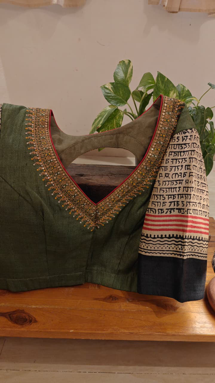 Our artisans creatively hand embroider, hand paint and hand print the blouses that come to you from the design house of SVASA. We use hand woven fabric extensively. You may notice very minute, almost insignificant flaws in the crafts since they are all handmade. We urge our patrons to overlook a few human errors that may have occurred in the process. Our aspirations are towards an empowered society, focusing on keeping traditional needlecraft alive for a long time to come.