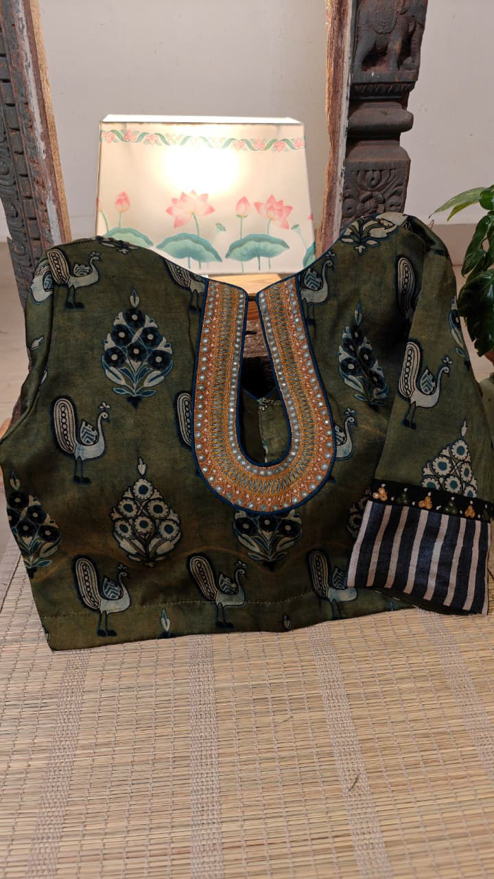 Our artisans creatively hand embroider, hand paint and hand print the blouses that come to you from the design house of SVASA. We use hand woven fabric extensively. You may notice very minute, almost insignificant flaws in the crafts since they are all handmade. We urge our patrons to overlook a few human errors that may have occurred in the process. Our aspirations are towards an empowered society, focusing on keeping traditional needlecraft alive for a long time to come.