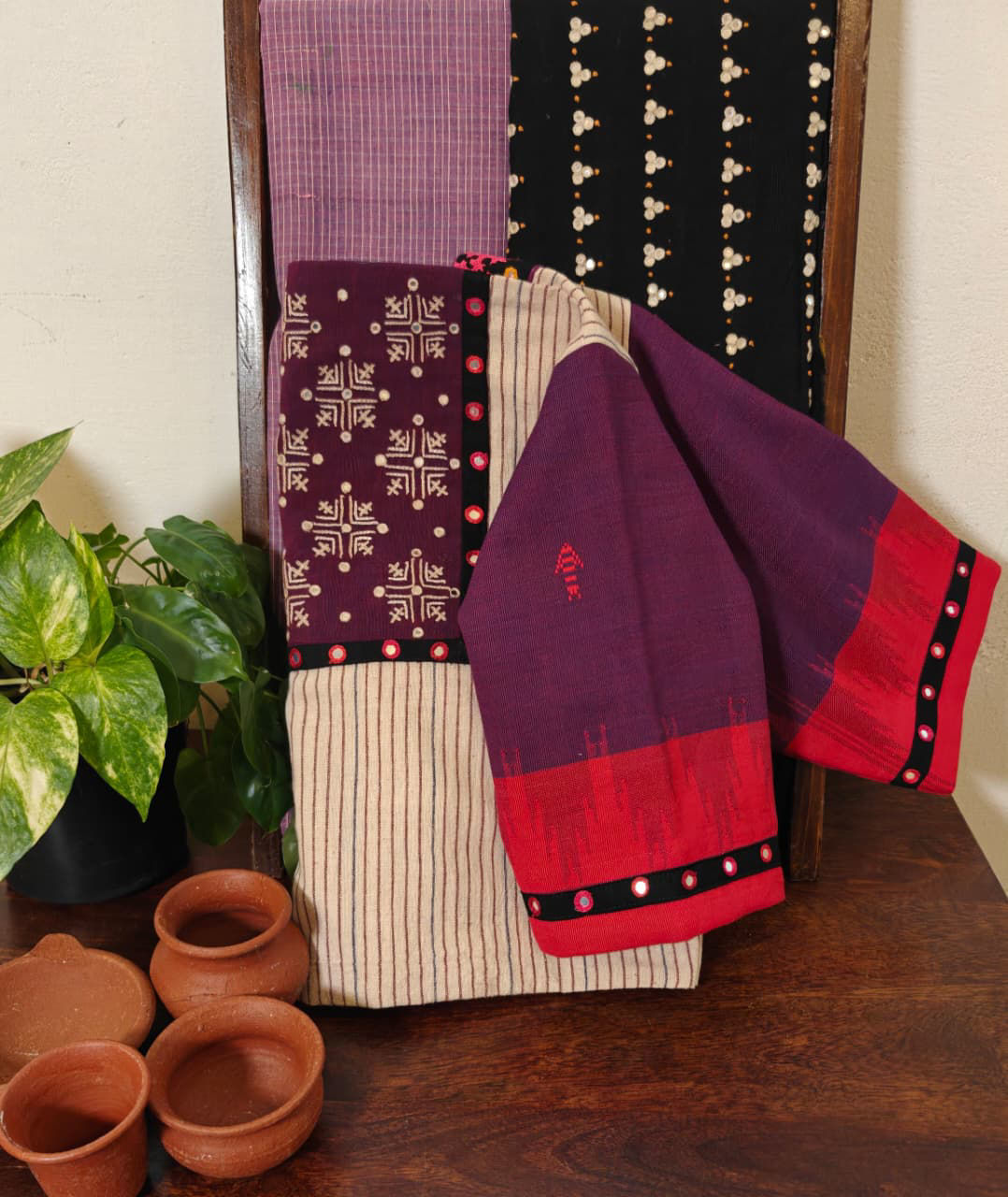 Our artisans creatively hand embroider, hand paint and hand print the blouses that come to you from the design house of SVASA. We use hand woven fabric extensively. You may notice very minute, almost insignificant flaws in the crafts since they are all handmade. We urge our patrons to overlook a few human errors that may have occurred in the process. Our aspirations are towards an empowered society, focusing on keeping traditional needlecraft alive for a long time to come.