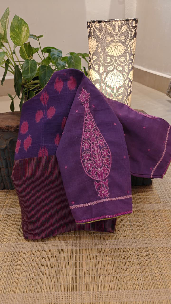 Shades of violet come together in a medley of handwoven textures. Finished with a classic motif embroidered on the sleeves – a timeless creation from our Blocks & Weaves line at Svasa. 🌿πŸͺ‘