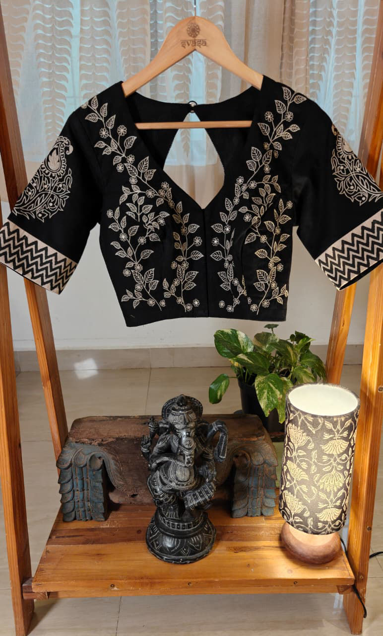 Our artisans creatively hand embroider, hand paint and hand print the blouses that come to you from the design house of SVASA. We use hand woven fabric extensively. You may notice very minute, almost insignificant flaws in the crafts since they are all handmade. We urge our patrons to overlook a few human errors that may have occurred in the process. Our aspirations are towards an empowered society, focusing on keeping traditional needlecraft alive for a long time to come.