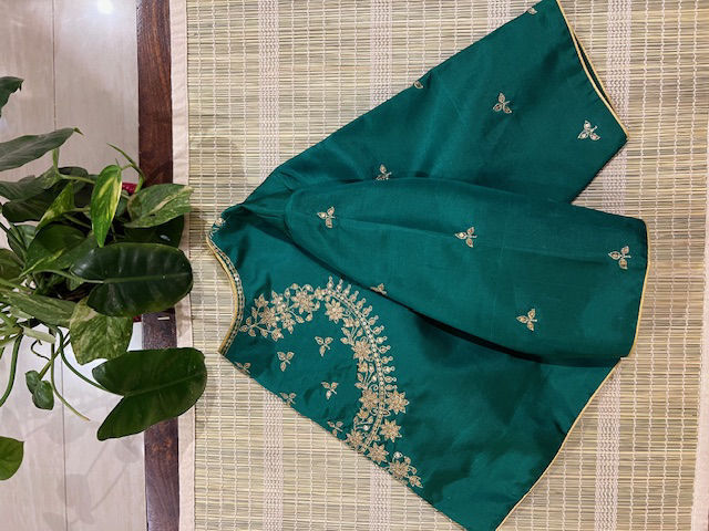 Our artisans creatively hand embroider, hand paint and hand print the blouses that come to you from the design house of SVASA. We use hand woven fabric extensively. You may notice very minute, almost insignificant flaws in the crafts since they are all handmade. We urge our patrons to overlook a few human errors that may have occurred in the process. Our aspirations are towards an empowered society, focusing on keeping traditional needlecraft alive for a long time to come.