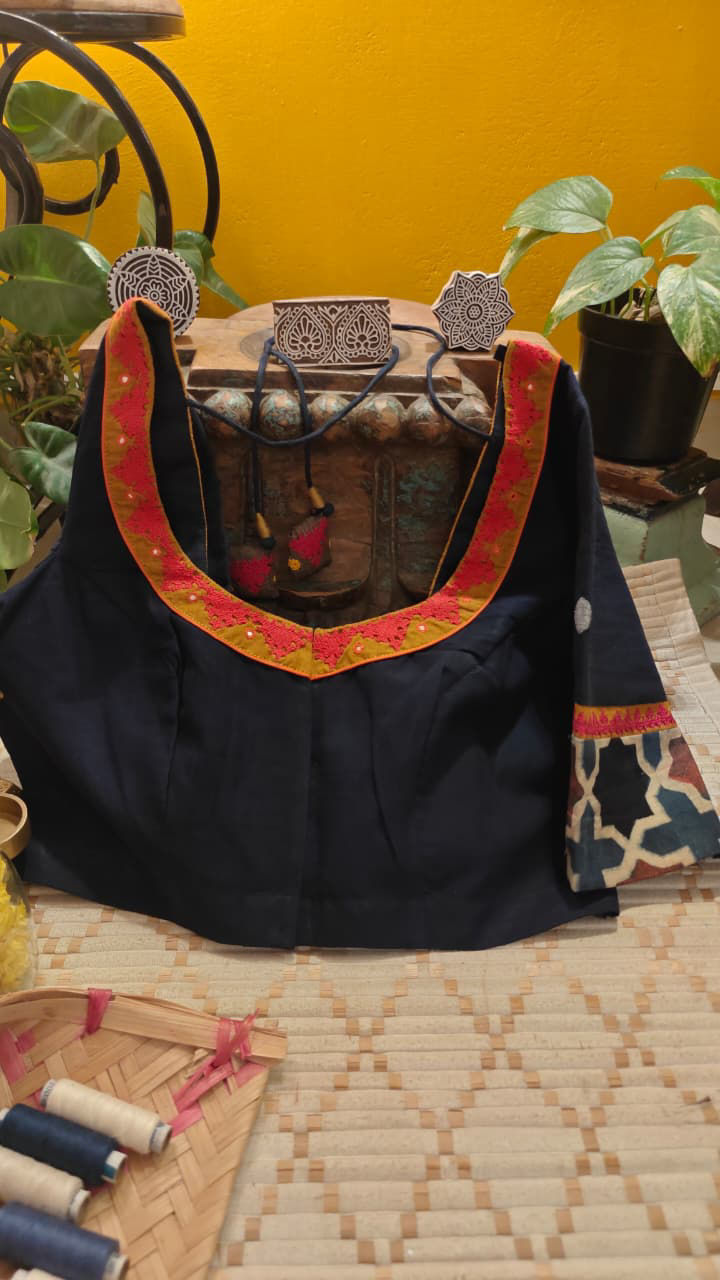 Our artisans creatively hand embroider, hand paint and hand print the blouses that come to you from the design house of SVASA. We use hand woven fabric extensively. You may notice very minute, almost insignificant flaws in the crafts since they are all handmade. We urge our patrons to overlook a few human errors that may have occurred in the process. Our aspirations are towards an empowered society, focusing on keeping traditional needlecraft alive for a long time to come.