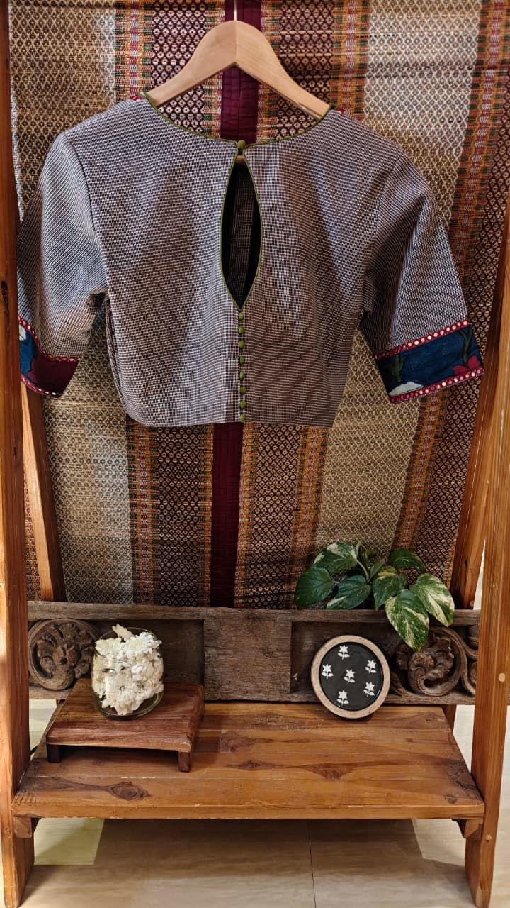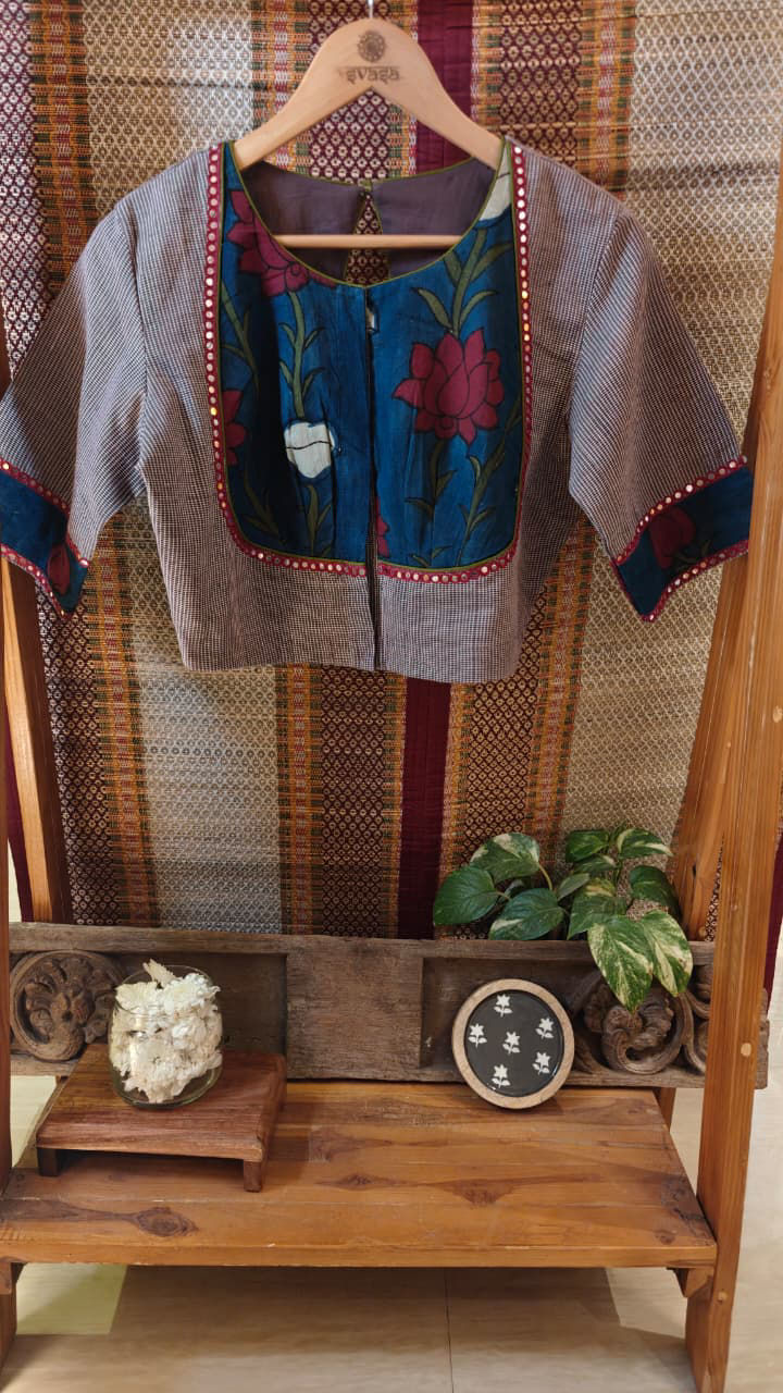 Our artisans creatively hand embroider, hand paint and hand print the blouses that come to you from the design house of SVASA. We use hand woven fabric extensively. You may notice very minute, almost insignificant flaws in the crafts since they are all handmade. We urge our patrons to overlook a few human errors that may have occurred in the process. Our aspirations are towards an empowered society, focusing on keeping traditional needlecraft alive for a long time to come.