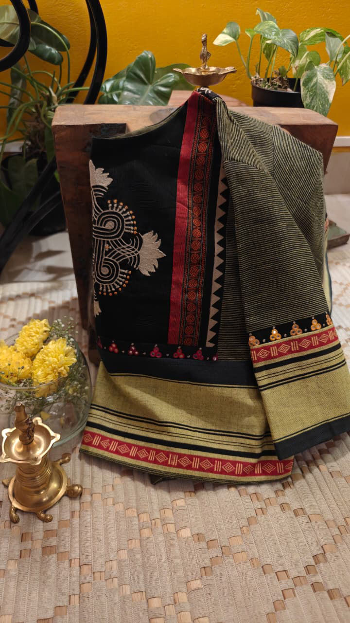 Our artisans creatively hand embroider, hand paint and hand print the blouses that come to you from the design house of SVASA. We use hand woven fabric extensively. You may notice very minute, almost insignificant flaws in the crafts since they are all handmade. We urge our patrons to overlook a few human errors that may have occurred in the process. Our aspirations are towards an empowered society, focusing on keeping traditional needlecraft alive for a long time to come.