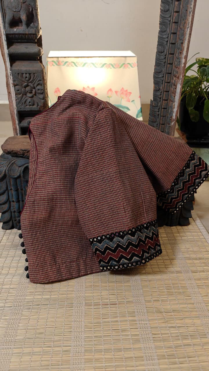 Our artisans creatively hand embroider, hand paint and hand print the blouses that come to you from the design house of SVASA. We use hand woven fabric extensively. You may notice very minute, almost insignificant flaws in the crafts since they are all handmade. We urge our patrons to overlook a few human errors that may have occurred in the process. Our aspirations are towards an empowered society, focusing on keeping traditional needlecraft alive for a long time to come.