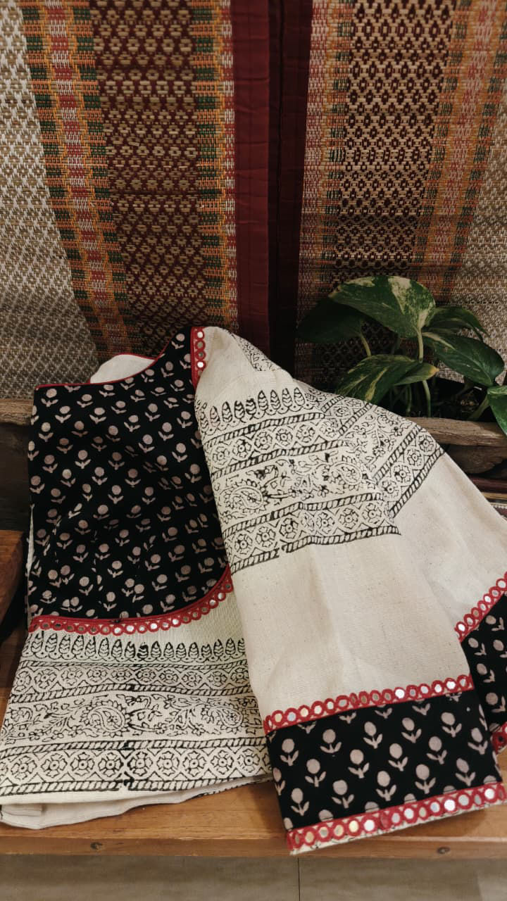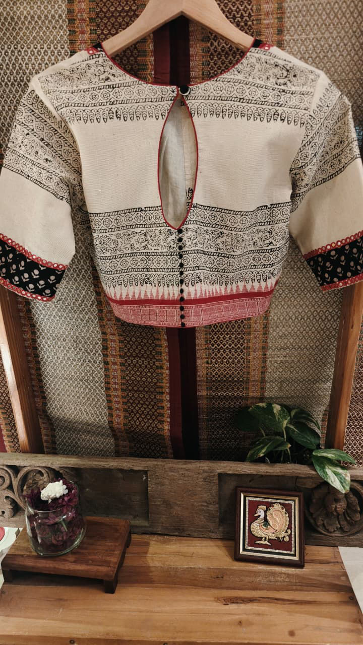 A harmonious coming together of Bhopali yokes with the understated elegance of Ponduru cotton and timeless block prints. The softness of handspun Ponduru forms the perfect canvas, allowing the structured beauty of the Bhopali yoke to stand out with quiet sophistication.