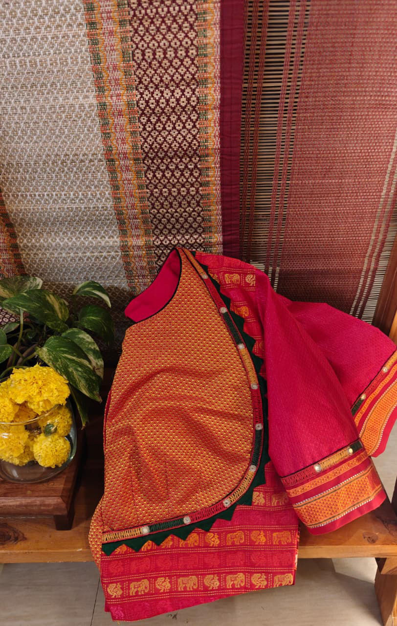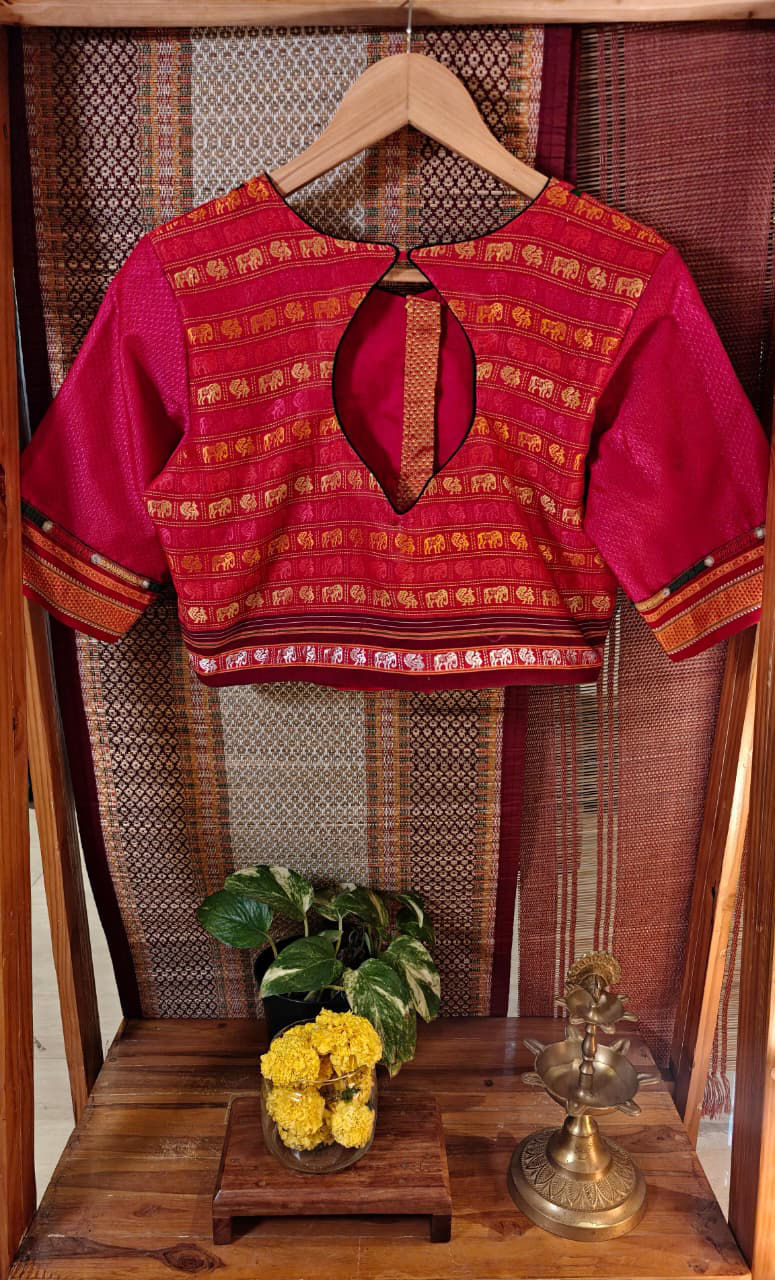 Our artisans creatively hand embroider, hand paint and hand print the blouses that come to you from the design house of SVASA. We use hand woven fabric extensively. You may notice very minute, almost insignificant flaws in the crafts since they are all handmade. We urge our patrons to overlook a few human errors that may have occurred in the process. Our aspirations are towards an empowered society, focusing on keeping traditional needlecraft alive for a long time to come.