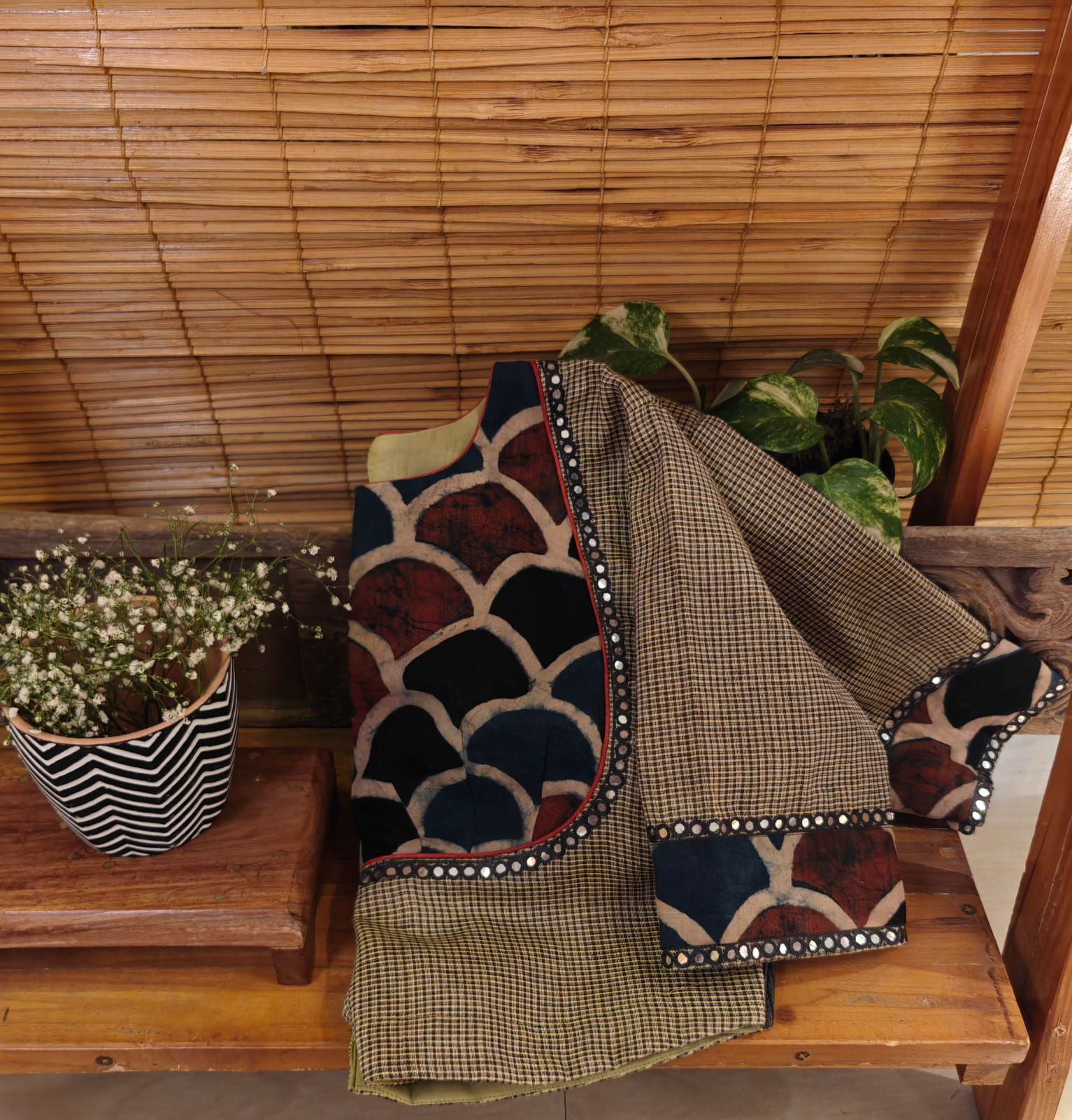 Our artisans creatively hand embroider, hand paint and hand print the blouses that come to you from the design house of SVASA. We use hand woven fabric extensively. You may notice very minute, almost insignificant flaws in the crafts since they are all handmade. We urge our patrons to overlook a few human errors that may have occurred in the process. Our aspirations are towards an empowered society, focusing on keeping traditional needlecraft alive for a long time to come.