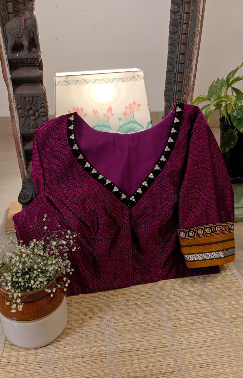 Our artisans creatively hand embroider, hand paint and hand print the blouses that come to you from the design house of SVASA. We use hand woven fabric extensively. You may notice very minute, almost insignificant flaws in the crafts since they are all handmade. We urge our patrons to overlook a few human errors that may have occurred in the process. Our aspirations are towards an empowered society, focusing on keeping traditional needlecraft alive for a long time to come.
