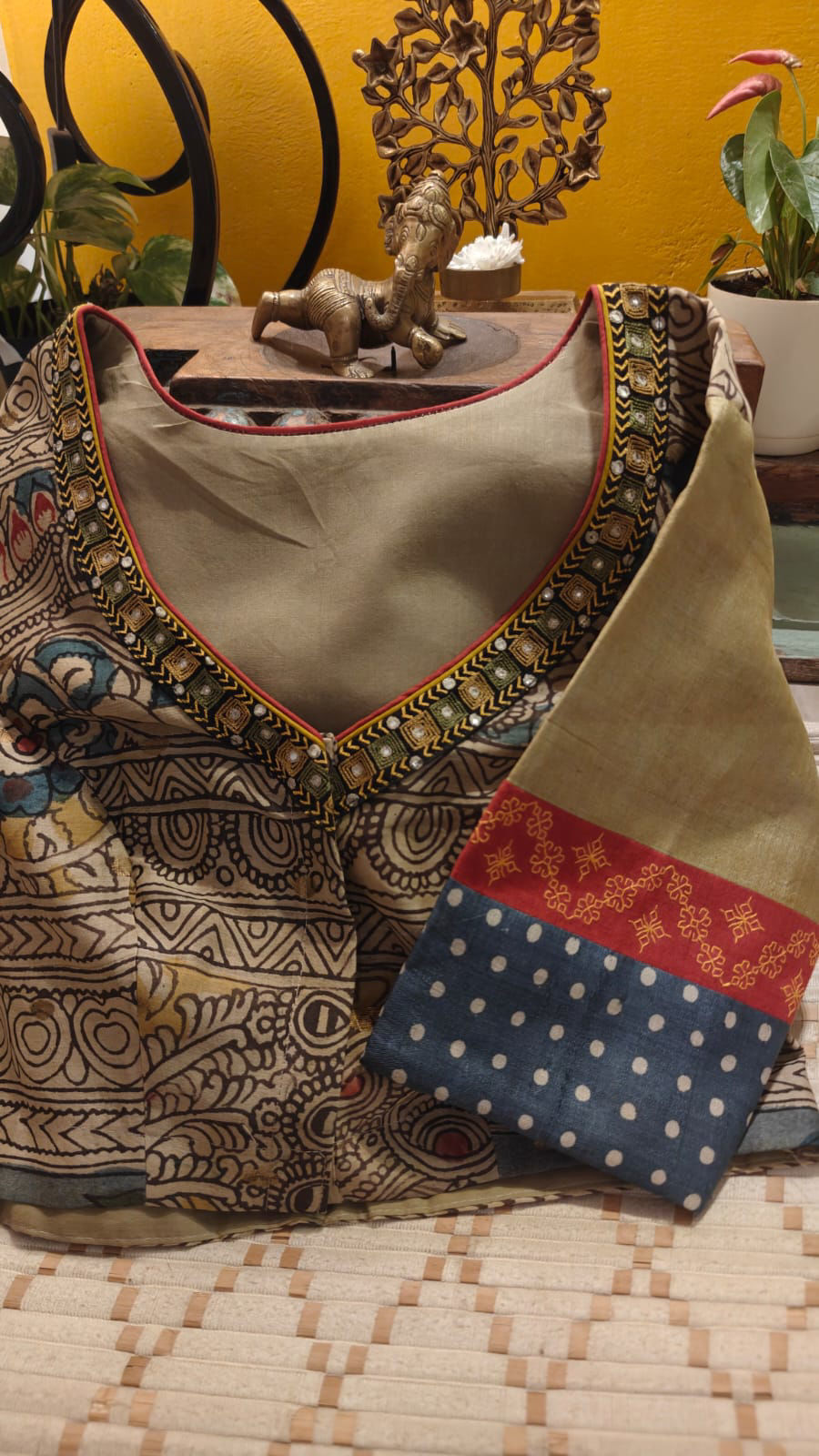 Our artisans creatively hand embroider, hand paint and hand print the blouses that come to you from the design house of SVASA. We use hand woven fabric extensively. You may notice very minute, almost insignificant flaws in the crafts since they are all handmade. We urge our patrons to overlook a few human errors that may have occurred in the process. Our aspirations are towards an empowered society, focusing on keeping traditional needlecraft alive for a long time to come.