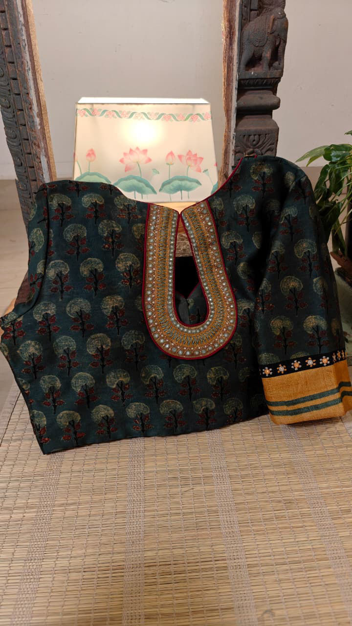 Our artisans creatively hand embroider, hand paint and hand print the blouses that come to you from the design house of SVASA. We use hand woven fabric extensively. You may notice very minute, almost insignificant flaws in the crafts since they are all handmade. We urge our patrons to overlook a few human errors that may have occurred in the process. Our aspirations are towards an empowered society, focusing on keeping traditional needlecraft alive for a long time to come.