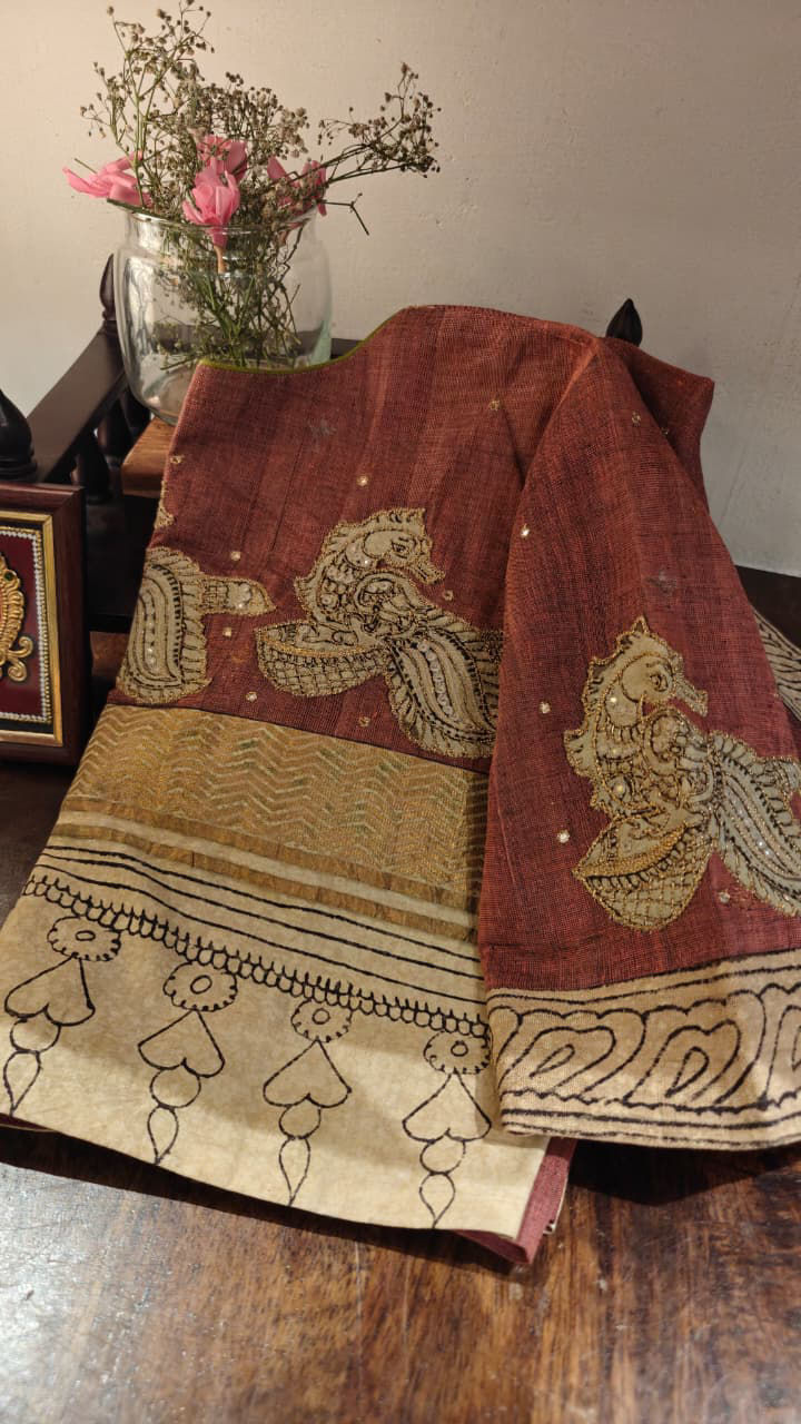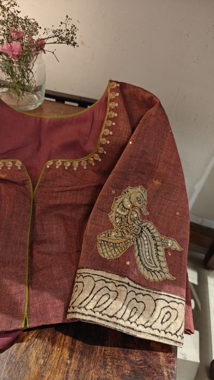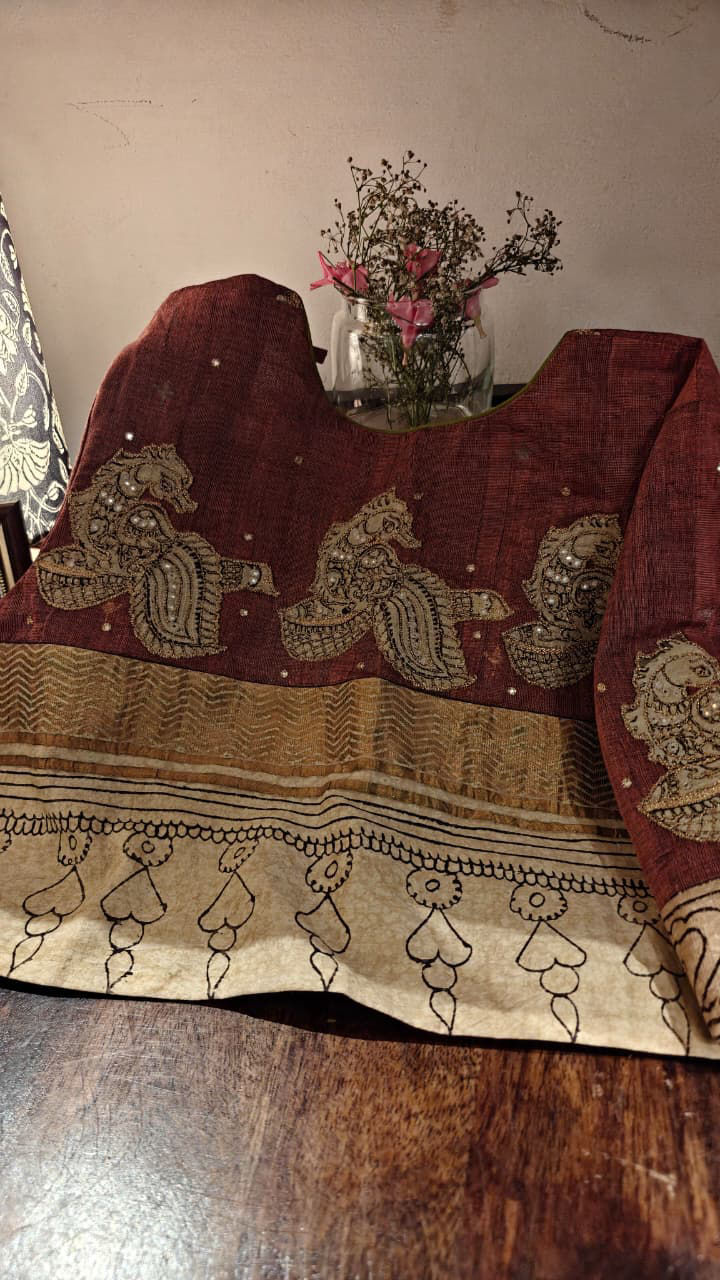 Our artisans creatively hand embroider, hand paint and hand print the blouses that come to you from the design house of SVASA. We use hand woven fabric extensively. You may notice very minute, almost insignificant flaws in the crafts since they are all handmade. We urge our patrons to overlook a few human errors that may have occurred in the process. Our aspirations are towards an empowered society, focusing on keeping traditional needlecraft alive for a long time to come.