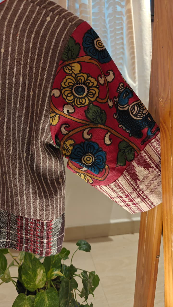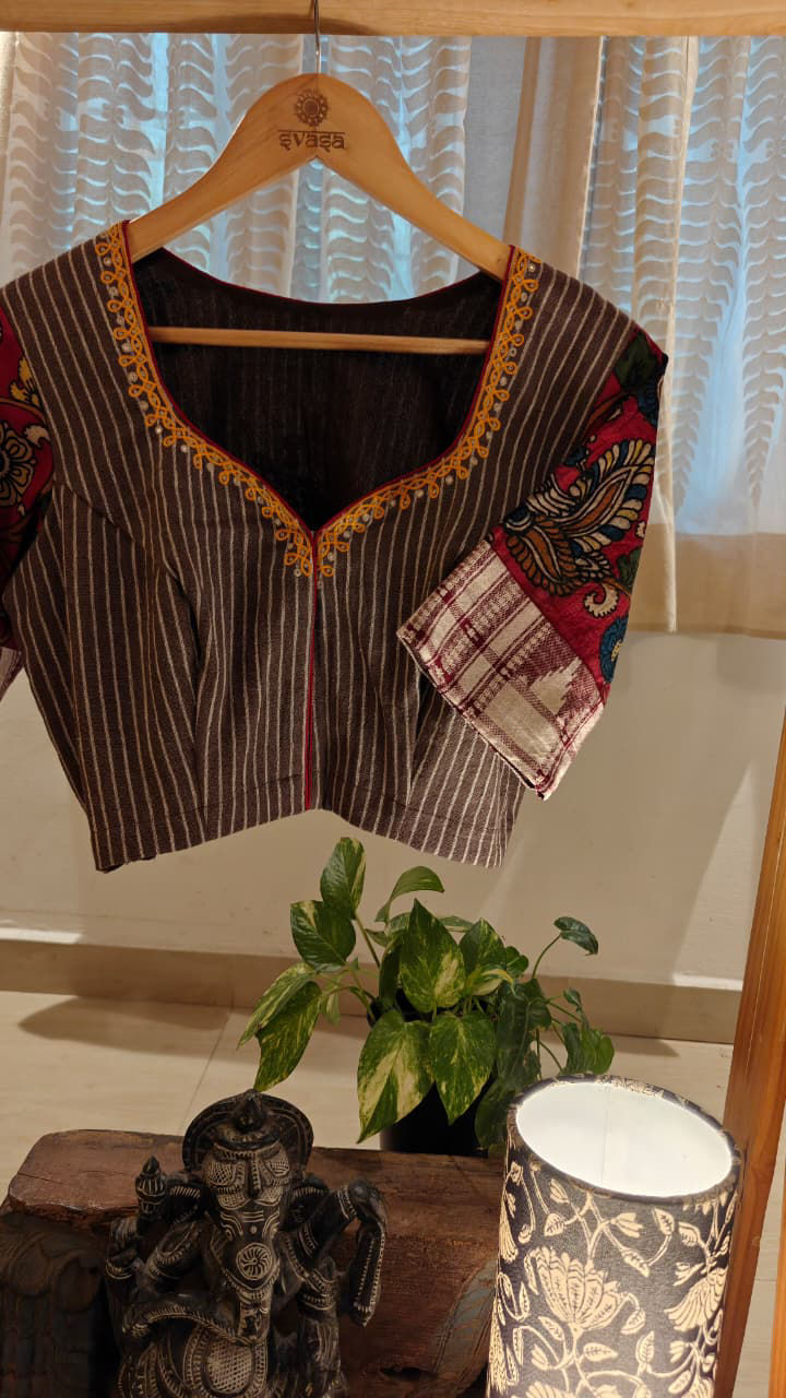 Our artisans creatively hand embroider, hand paint and hand print the blouses that come to you from the design house of SVASA. We use hand woven fabric extensively. You may notice very minute, almost insignificant flaws in the crafts since they are all handmade. We urge our patrons to overlook a few human errors that may have occurred in the process. Our aspirations are towards an empowered society, focusing on keeping traditional needlecraft alive for a long time to come.