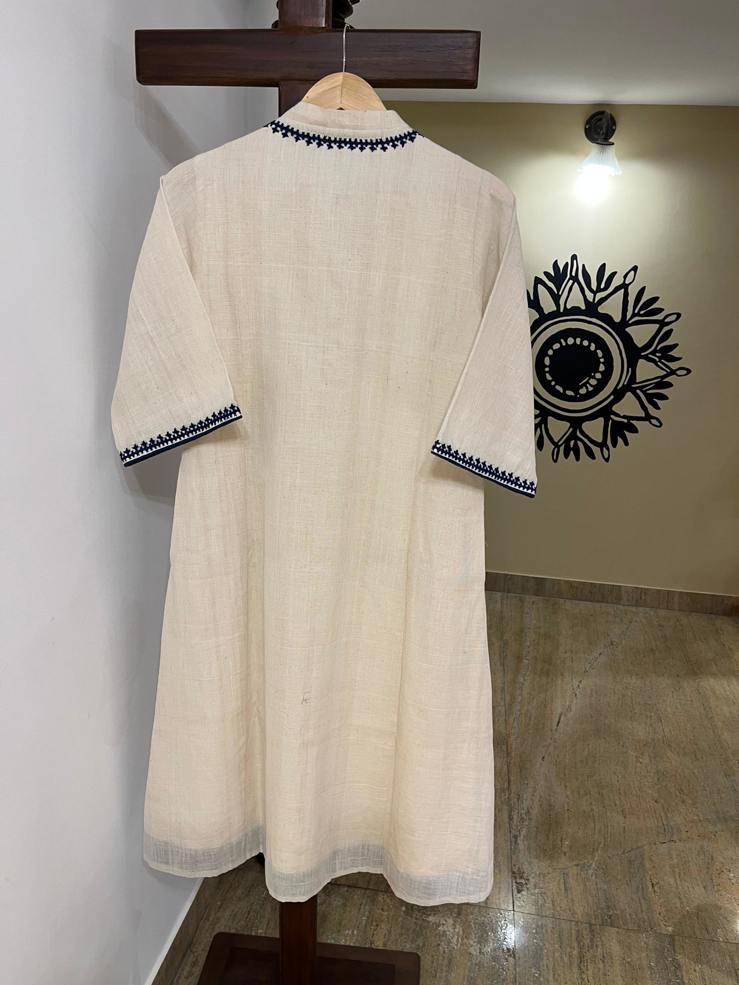 The Swetha collection is crafted in pure white Khadi cotton, celebrating the beauty of simplicity and the richness of handwoven fabric. Light, breathable, and effortlessly elegant, each kurta is designed for comfort that feels timeless.
