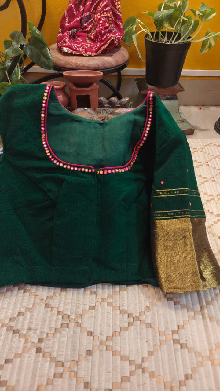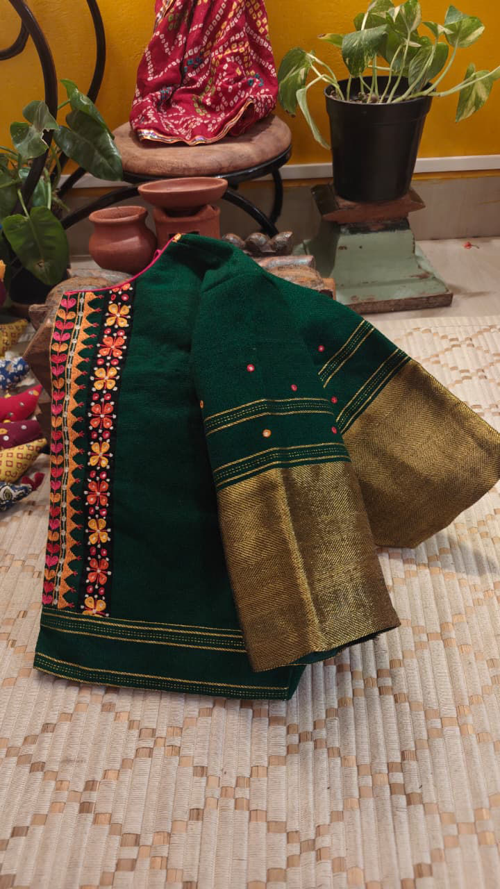 Our artisans creatively hand embroider, hand paint and hand print the blouses that come to you from the design house of SVASA. We use hand woven fabric extensively. You may notice very minute, almost insignificant flaws in the crafts since they are all handmade. We urge our patrons to overlook a few human errors that may have occurred in the process. Our aspirations are towards an empowered society, focusing on keeping traditional needlecraft alive for a long time to come.