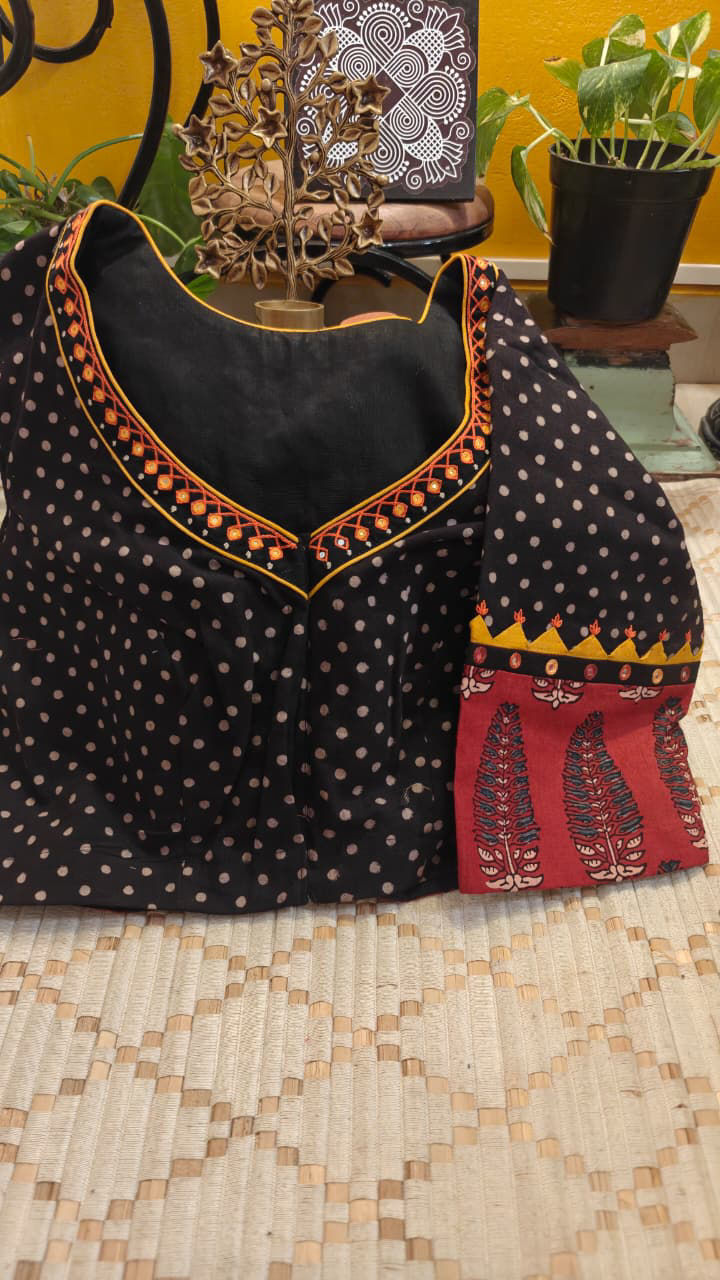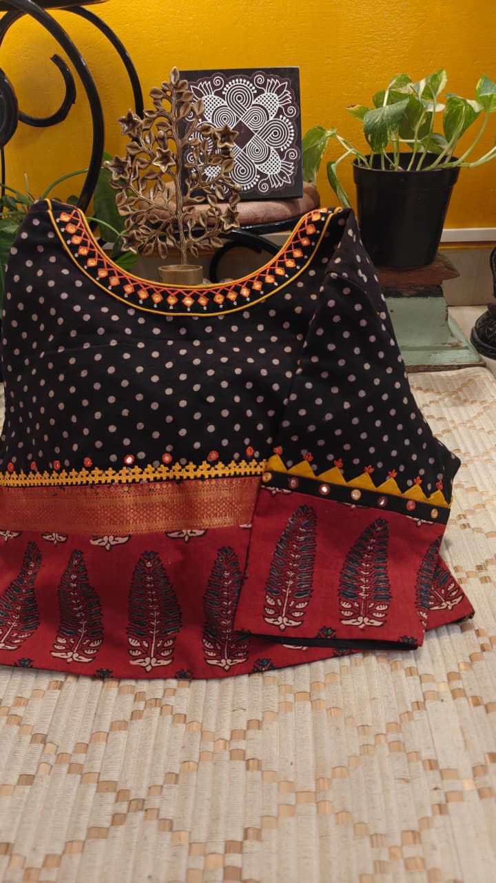 Our artisans creatively hand embroider, hand paint and hand print the blouses that come to you from the design house of SVASA. We use hand woven fabric extensively. You may notice very minute, almost insignificant flaws in the crafts since they are all handmade. We urge our patrons to overlook a few human errors that may have occurred in the process. Our aspirations are towards an empowered society, focusing on keeping traditional needlecraft alive for a long time to come.