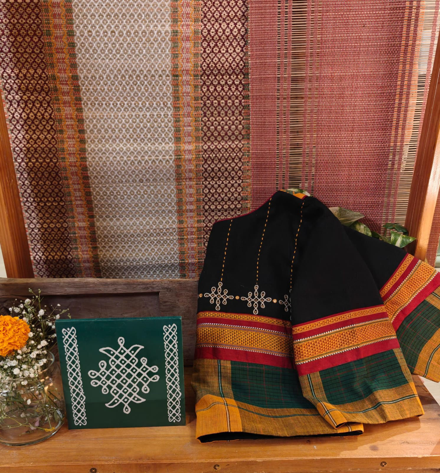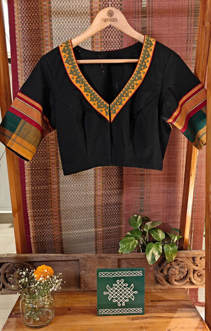 Our artisans creatively hand embroider, hand paint and hand print the blouses that come to you from the design house of SVASA. We use hand woven fabric extensively. You may notice very minute, almost insignificant flaws in the crafts since they are all handmade. We urge our patrons to overlook a few human errors that may have occurred in the process. Our aspirations are towards an empowered society, focusing on keeping traditional needlecraft alive for a long time to come.