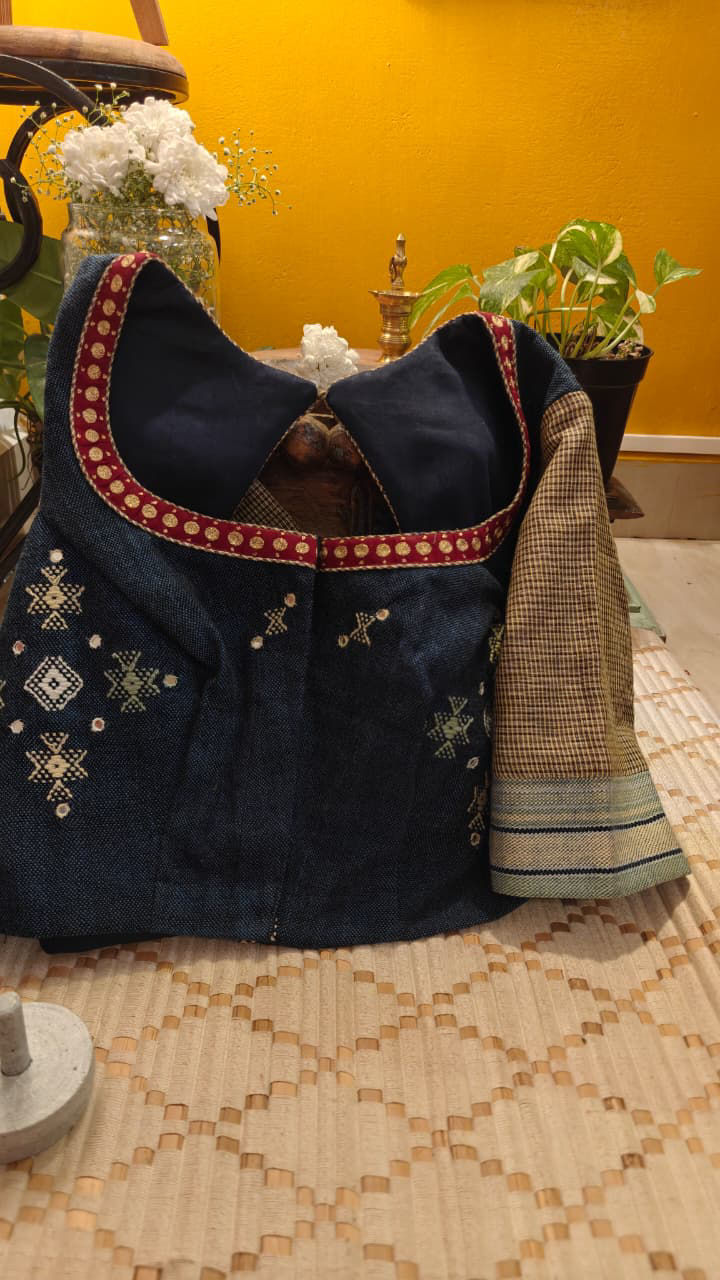 Our artisans creatively hand embroider, hand paint and hand print the blouses that come to you from the design house of SVASA. We use hand woven fabric extensively. You may notice very minute, almost insignificant flaws in the crafts since they are all handmade. We urge our patrons to overlook a few human errors that may have occurred in the process. Our aspirations are towards an empowered society, focusing on keeping traditional needlecraft alive for a long time to come.