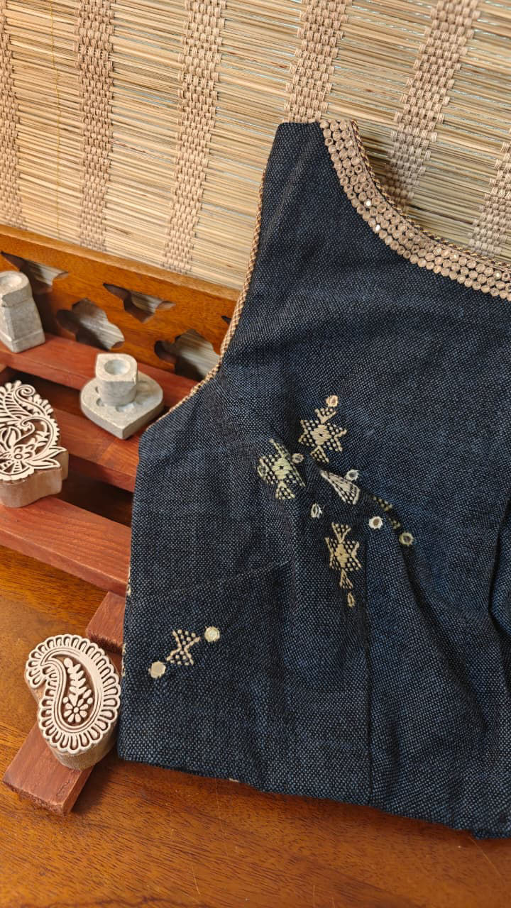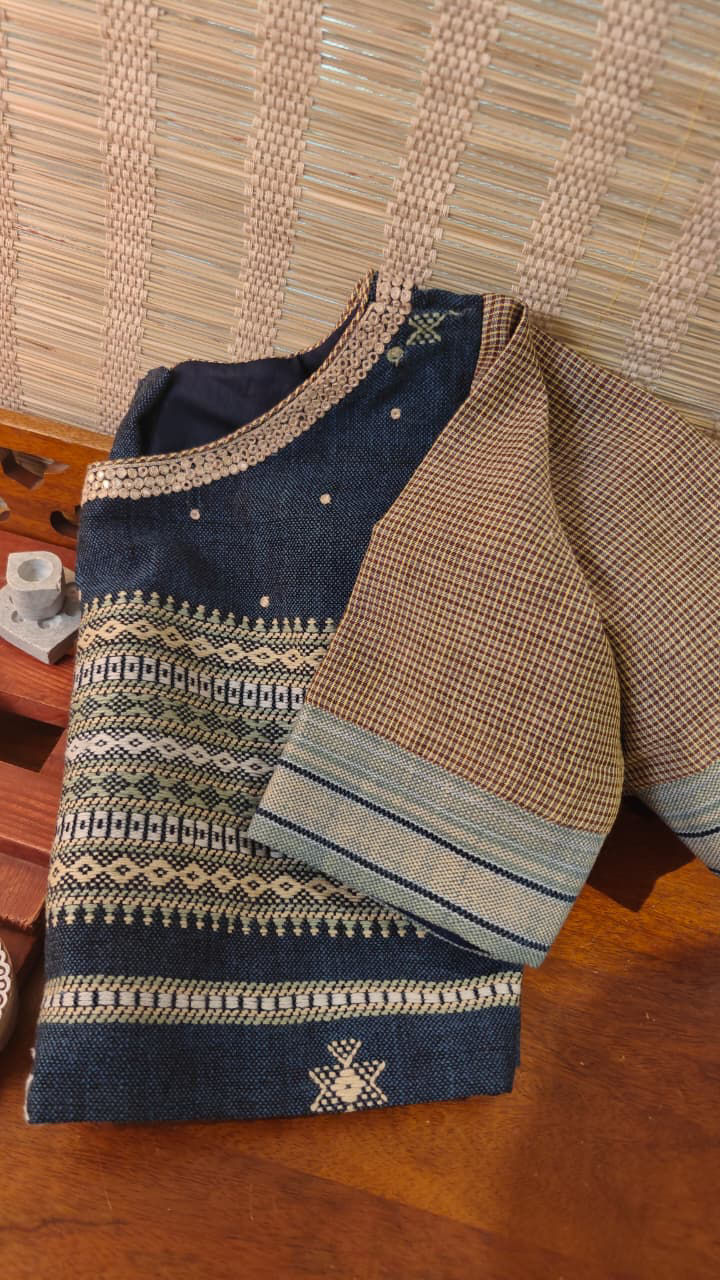 Our artisans creatively hand embroider, hand paint and hand print the blouses that come to you from the design house of SVASA. We use hand woven fabric extensively. You may notice very minute, almost insignificant flaws in the crafts since they are all handmade. We urge our patrons to overlook a few human errors that may have occurred in the process. Our aspirations are towards an empowered society, focusing on keeping traditional needlecraft alive for a long time to come.