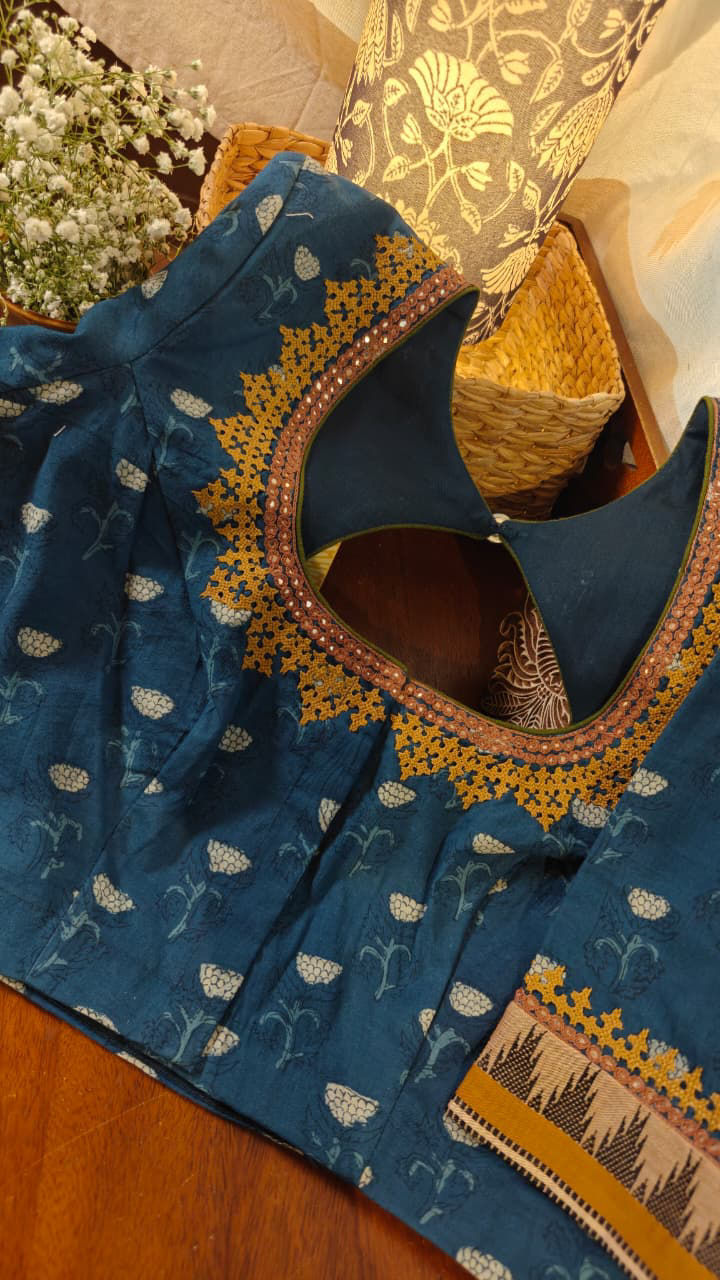 Our artisans creatively hand embroider, hand paint and hand print the blouses that come to you from the design house of SVASA. We use hand woven fabric extensively. You may notice very minute, almost insignificant flaws in the crafts since they are all handmade. We urge our patrons to overlook a few human errors that may have occurred in the process. Our aspirations are towards an empowered society, focusing on keeping traditional needlecraft alive for a long time to come.