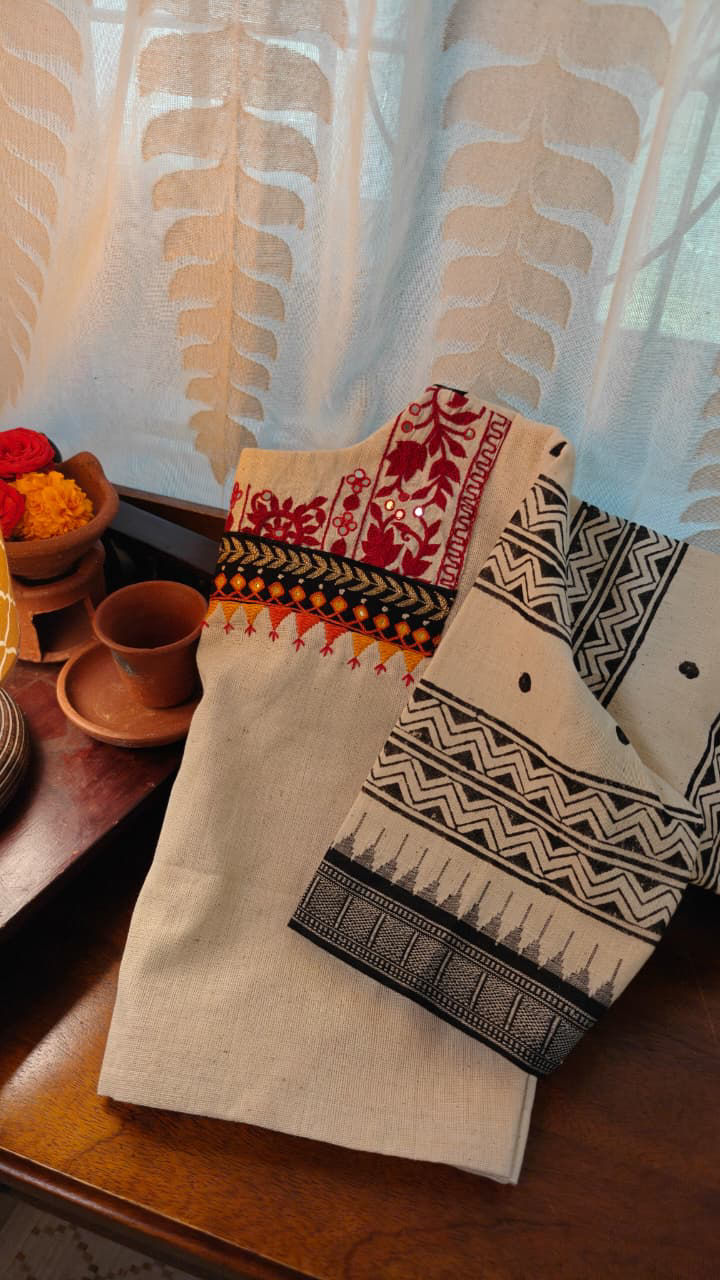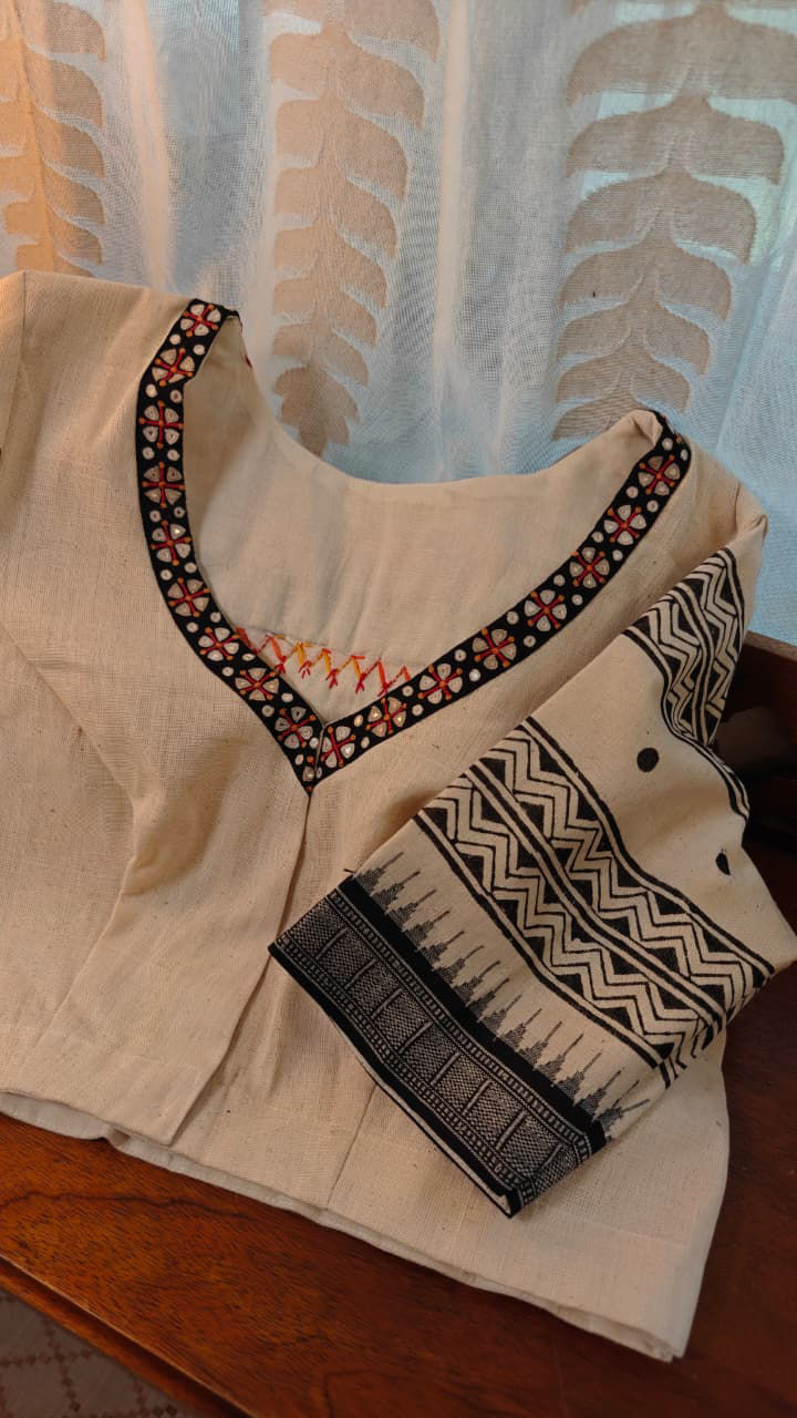 Our artisans creatively hand embroider, hand paint and hand print the blouses that come to you from the design house of SVASA. We use hand woven fabric extensively. You may notice very minute, almost insignificant flaws in the crafts since they are all handmade. We urge our patrons to overlook a few human errors that may have occurred in the process. Our aspirations are towards an empowered society, focusing on keeping traditional needlecraft alive for a long time to come.