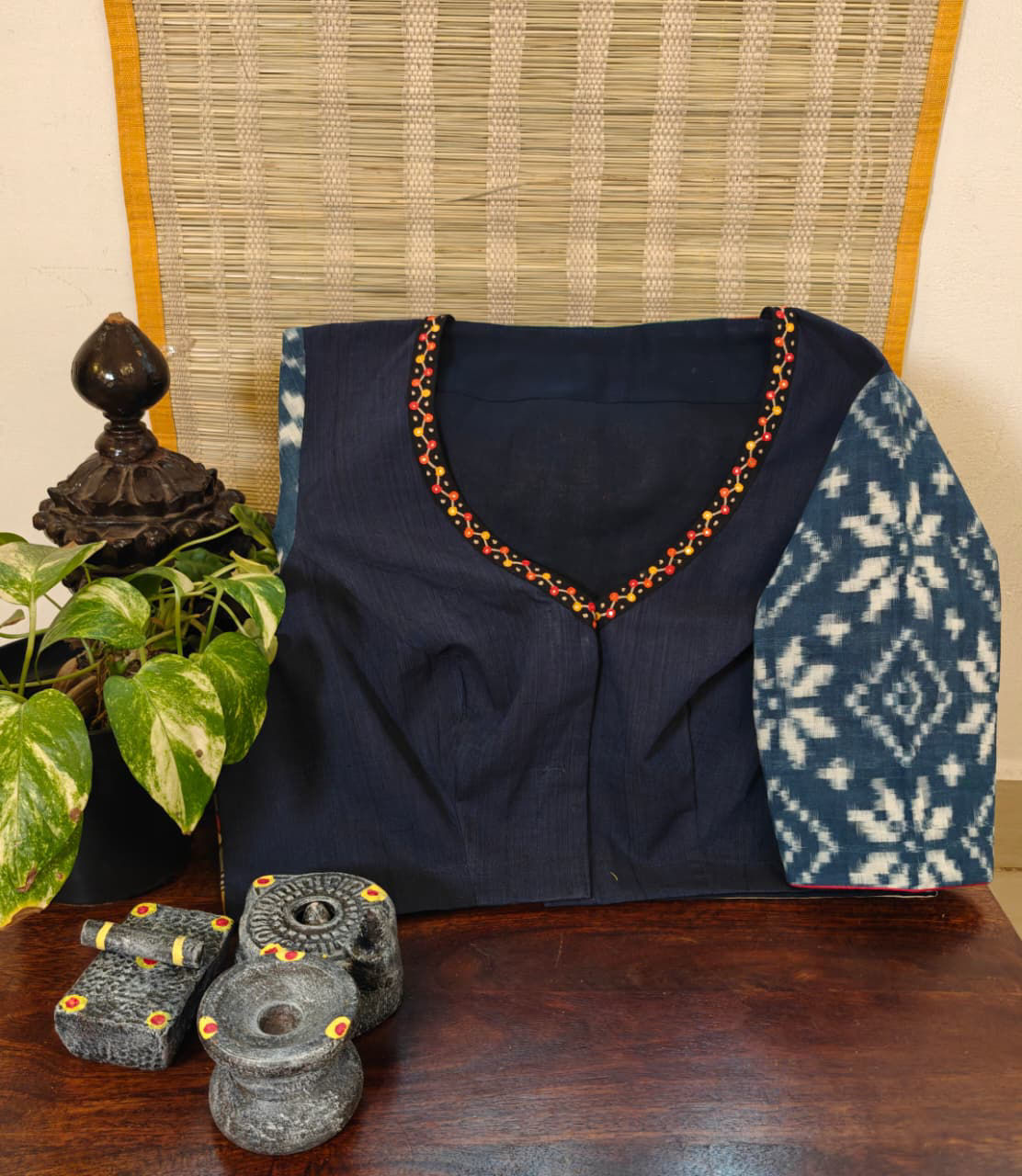 Our artisans creatively hand embroider, hand paint and hand print the blouses that come to you from the design house of SVASA. We use hand woven fabric extensively. You may notice very minute, almost insignificant flaws in the crafts since they are all handmade. We urge our patrons to overlook a few human errors that may have occurred in the process. Our aspirations are towards an empowered society, focusing on keeping traditional needlecraft alive for a long time to come.