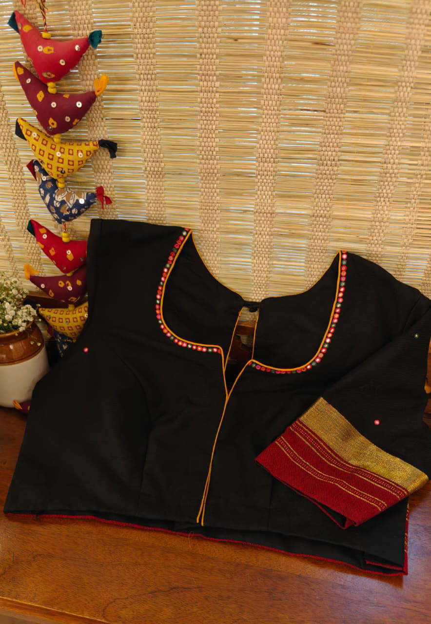 Our artisans creatively hand embroider, hand paint and hand print the blouses that come to you from the design house of SVASA. We use hand woven fabric extensively. You may notice very minute, almost insignificant flaws in the crafts since they are all handmade. We urge our patrons to overlook a few human errors that may have occurred in the process. Our aspirations are towards an empowered society, focusing on keeping traditional needlecraft alive for a long time to come.