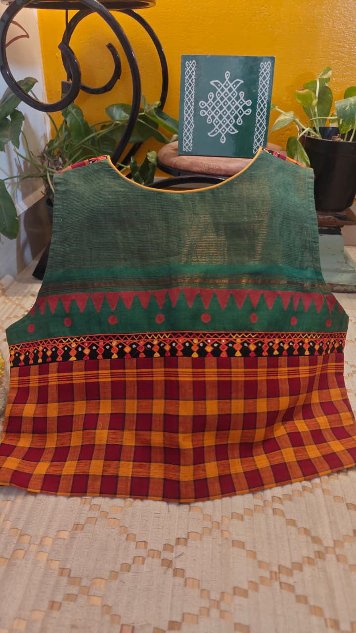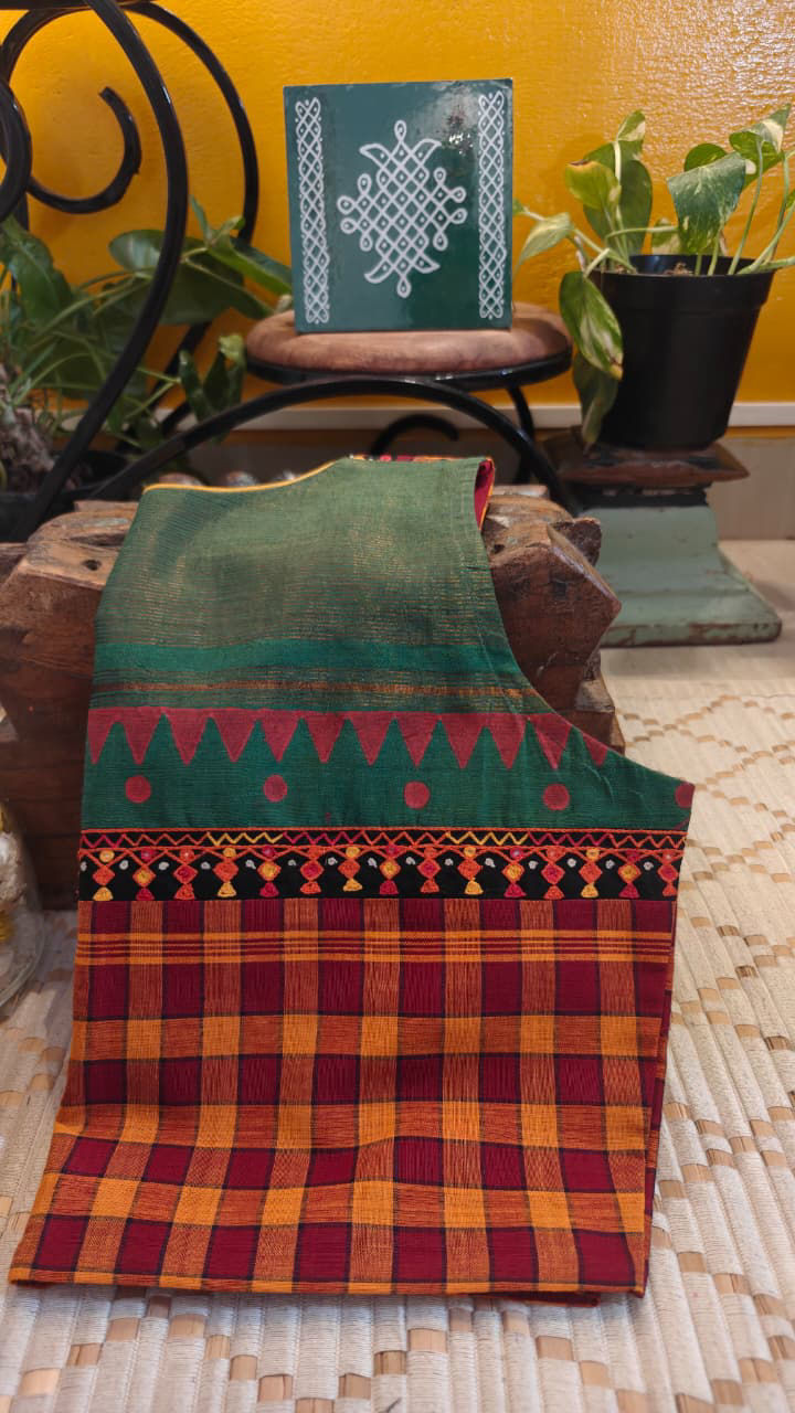 Our artisans creatively hand embroider, hand paint and hand print the blouses that come to you from the design house of SVASA. We use hand woven fabric extensively. You may notice very minute, almost insignificant flaws in the crafts since they are all handmade. We urge our patrons to overlook a few human errors that may have occurred in the process. Our aspirations are towards an empowered society, focusing on keeping traditional needlecraft alive for a long time to come.