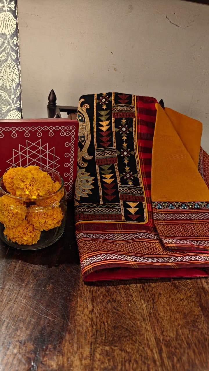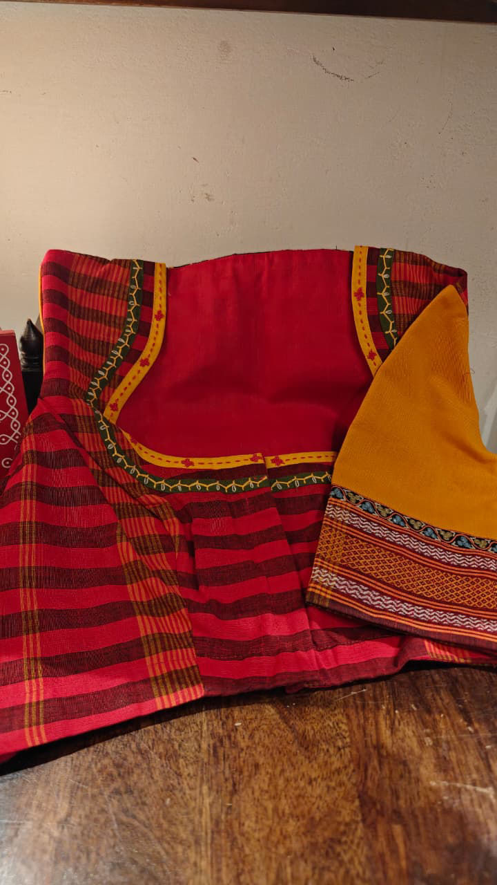 Our artisans creatively hand embroider, hand paint and hand print the blouses that come to you from the design house of SVASA. We use hand woven fabric extensively. You may notice very minute, almost insignificant flaws in the crafts since they are all handmade. We urge our patrons to overlook a few human errors that may have occurred in the process. Our aspirations are towards an empowered society, focusing on keeping traditional needlecraft alive for a long time to come.