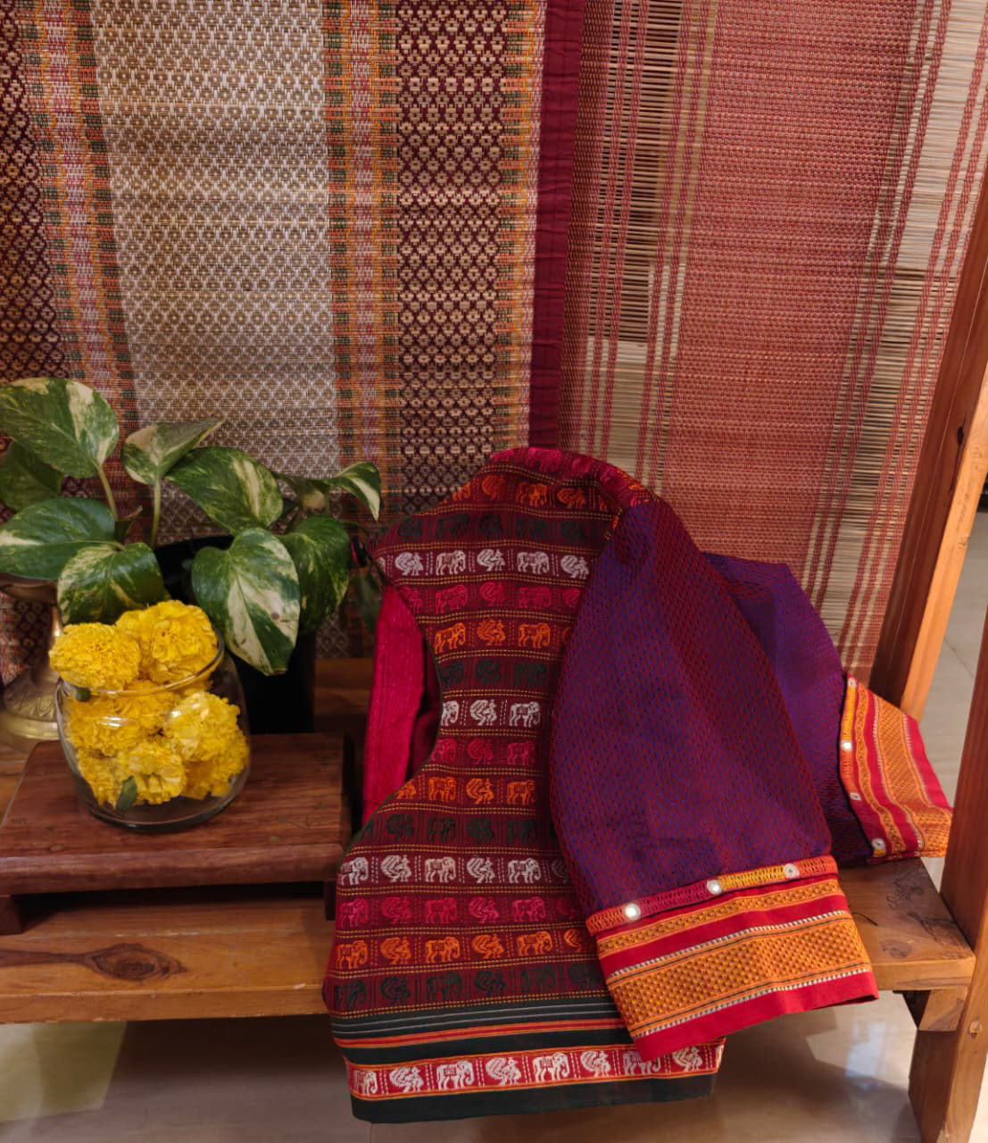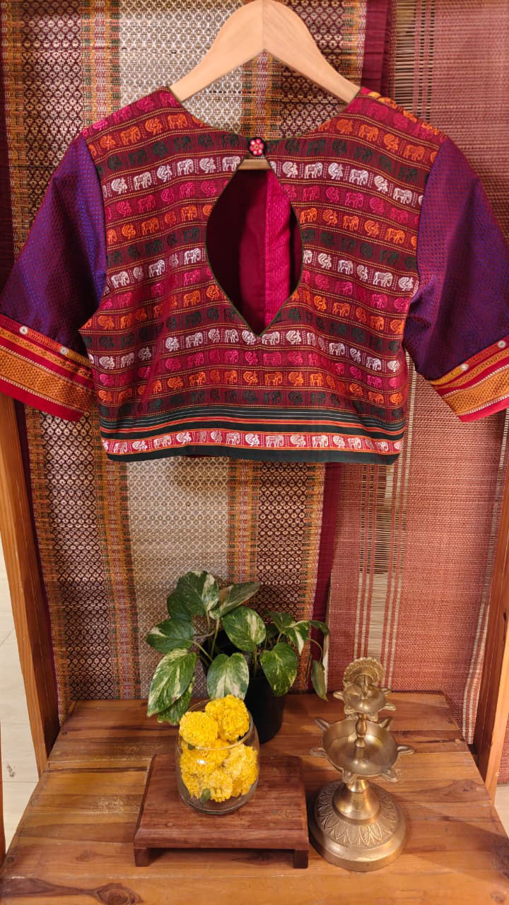 Our artisans creatively hand embroider, hand paint and hand print the blouses that come to you from the design house of SVASA. We use hand woven fabric extensively. You may notice very minute, almost insignificant flaws in the crafts since they are all handmade. We urge our patrons to overlook a few human errors that may have occurred in the process. Our aspirations are towards an empowered society, focusing on keeping traditional needlecraft alive for a long time to come.