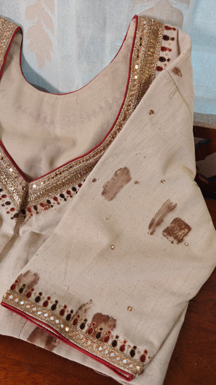 Our artisans creatively hand embroider, hand paint and hand print the blouses that come to you from the design house of SVASA. We use hand woven fabric extensively. You may notice very minute, almost insignificant flaws in the crafts since they are all handmade. We urge our patrons to overlook a few human errors that may have occurred in the process. Our aspirations are towards an empowered society, focusing on keeping traditional needlecraft alive for a long time to come.