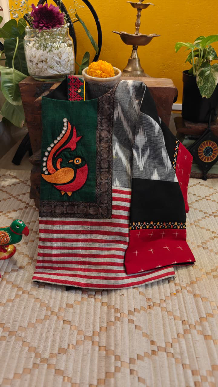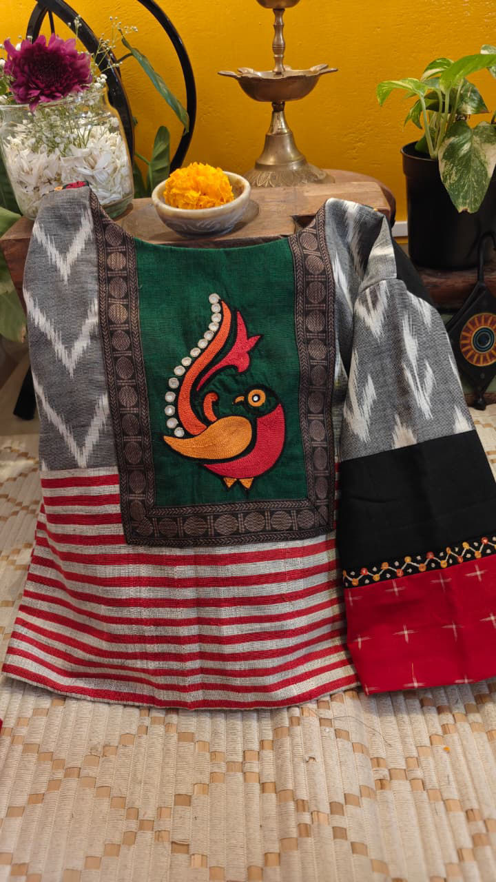 Our artisans creatively hand embroider, hand paint and hand print the blouses that come to you from the design house of SVASA. We use hand woven fabric extensively. You may notice very minute, almost insignificant flaws in the crafts since they are all handmade. We urge our patrons to overlook a few human errors that may have occurred in the process. Our aspirations are towards an empowered society, focusing on keeping traditional needlecraft alive for a long time to come.