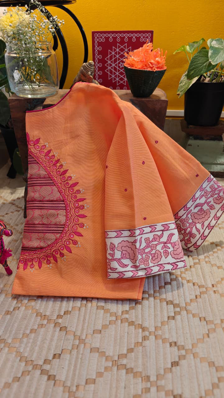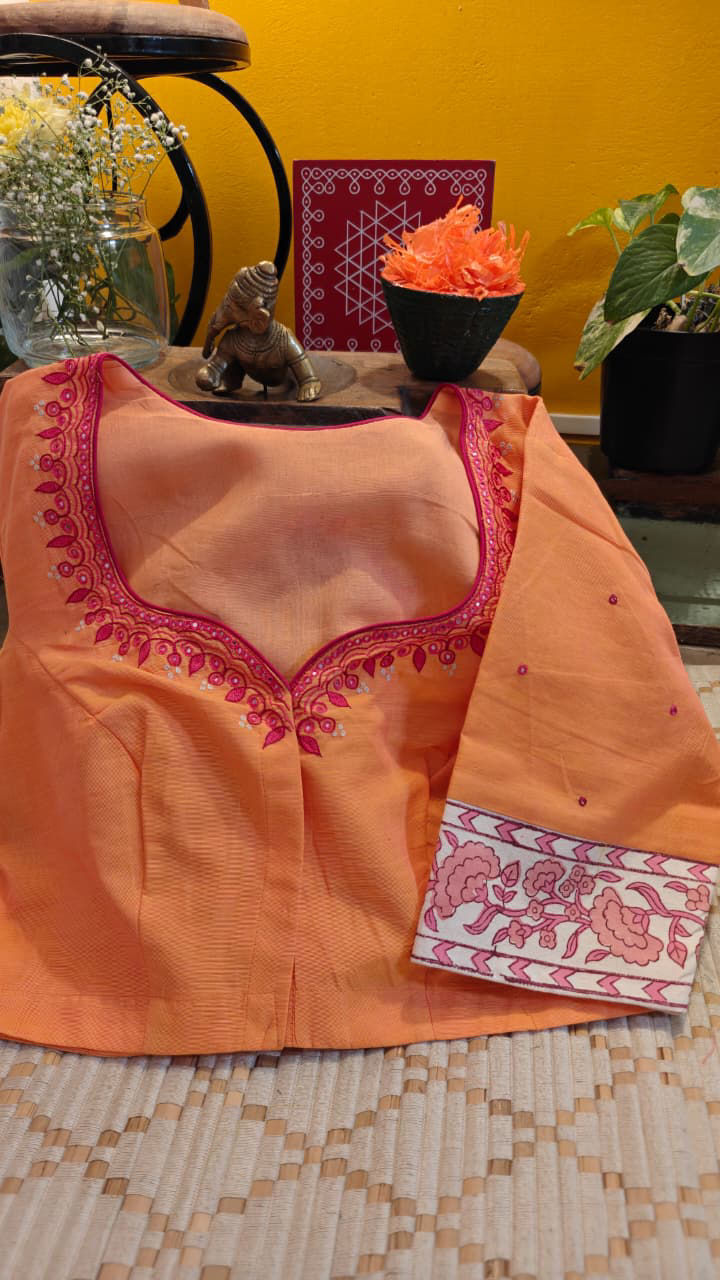 Our artisans creatively hand embroider, hand paint and hand print the blouses that come to you from the design house of SVASA. We use hand woven fabric extensively. You may notice very minute, almost insignificant flaws in the crafts since they are all handmade. We urge our patrons to overlook a few human errors that may have occurred in the process. Our aspirations are towards an empowered society, focusing on keeping traditional needlecraft alive for a long time to come.