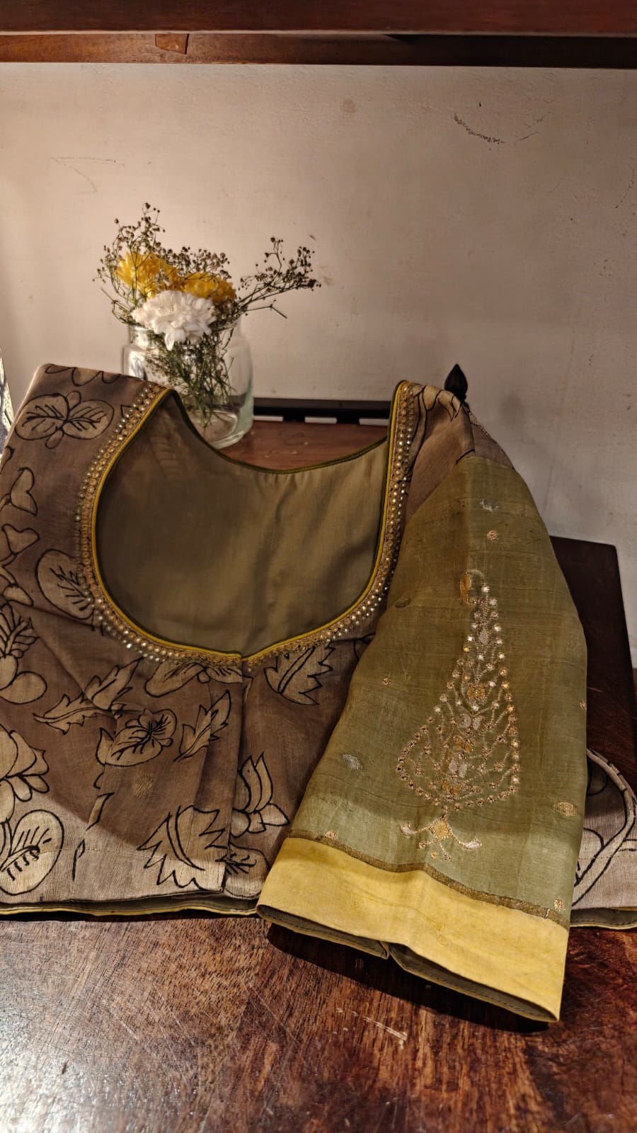 Our artisans creatively hand embroider, hand paint and hand print the blouses that come to you from the design house of SVASA. We use hand woven fabric extensively. You may notice very minute, almost insignificant flaws in the crafts since they are all handmade. We urge our patrons to overlook a few human errors that may have occurred in the process. Our aspirations are towards an empowered society, focusing on keeping traditional needlecraft alive for a long time to come.