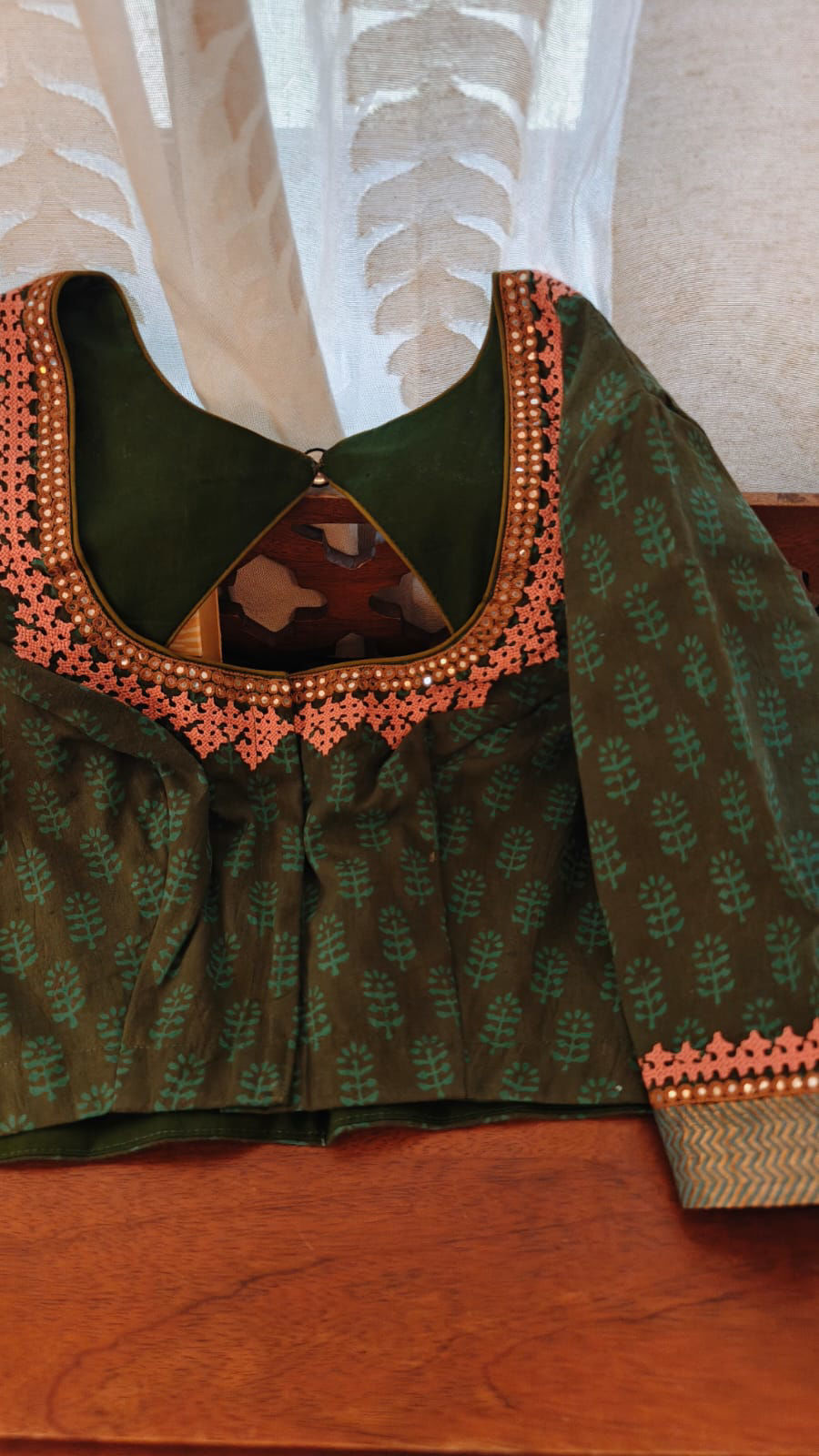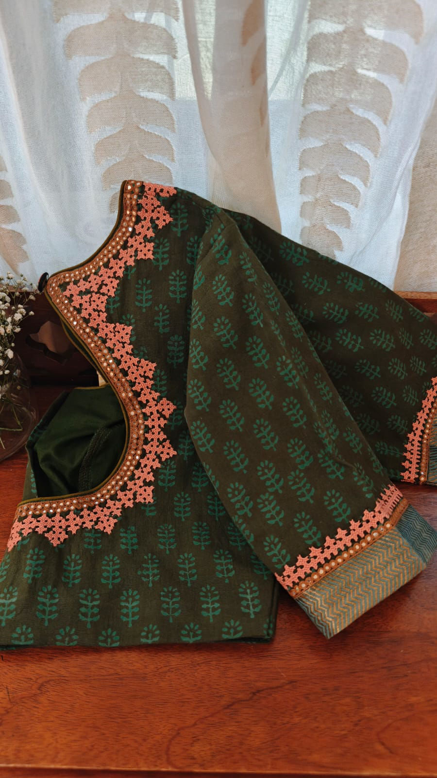 Our artisans creatively hand embroider, hand paint and hand print the blouses that come to you from the design house of SVASA. We use hand woven fabric extensively. You may notice very minute, almost insignificant flaws in the crafts since they are all handmade. We urge our patrons to overlook a few human errors that may have occurred in the process. Our aspirations are towards an empowered society, focusing on keeping traditional needlecraft alive for a long time to come.