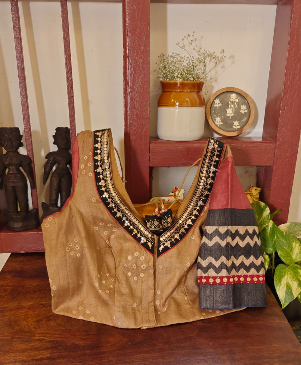 Our artisans creatively hand embroider, hand paint and hand print the blouses that come to you from the design house of SVASA. We use hand woven fabric extensively. You may notice very minute, almost insignificant flaws in the crafts since they are all handmade. We urge our patrons to overlook a few human errors that may have occurred in the process. Our aspirations are towards an empowered society, focusing on keeping traditional needlecraft alive for a long time to come.