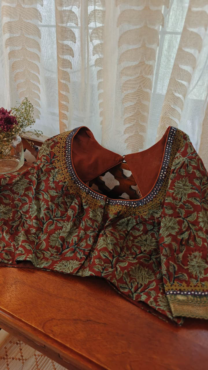 Sunlit Stitches | Block Print & Kutchi olive hues.